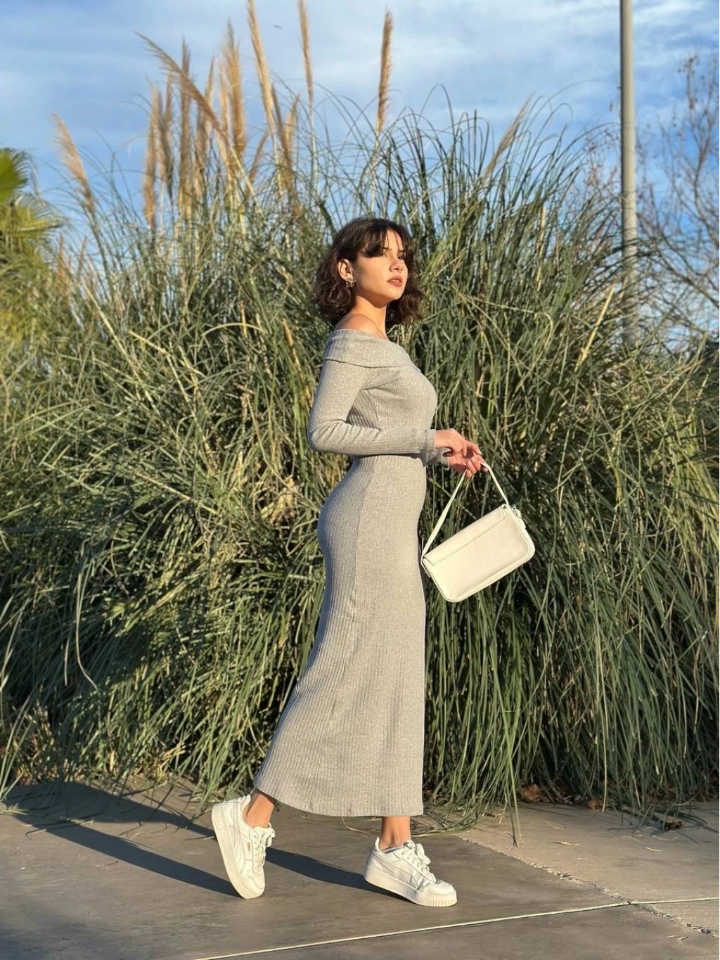 Bu Madonna yaka uzun elbise ile şıklığınızı ve konforunuzu bir arada bulacaksınız. Şimdi sipariş verin!