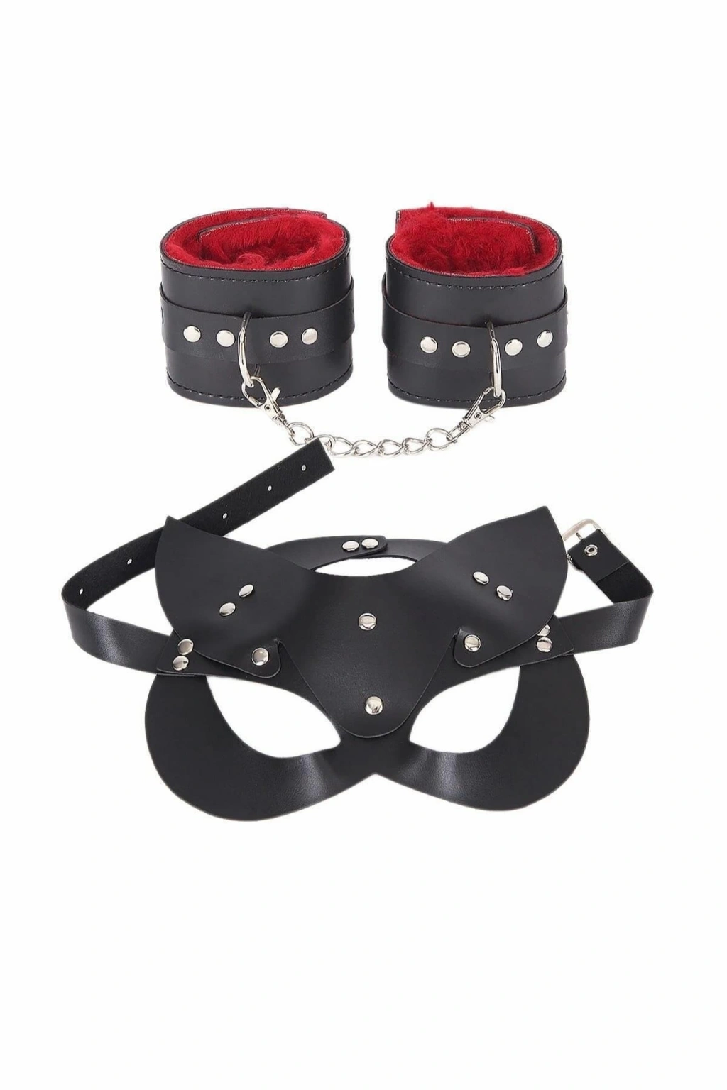 Bicomi Maske Ve Kelepçe Deri Harness Fantezi Set