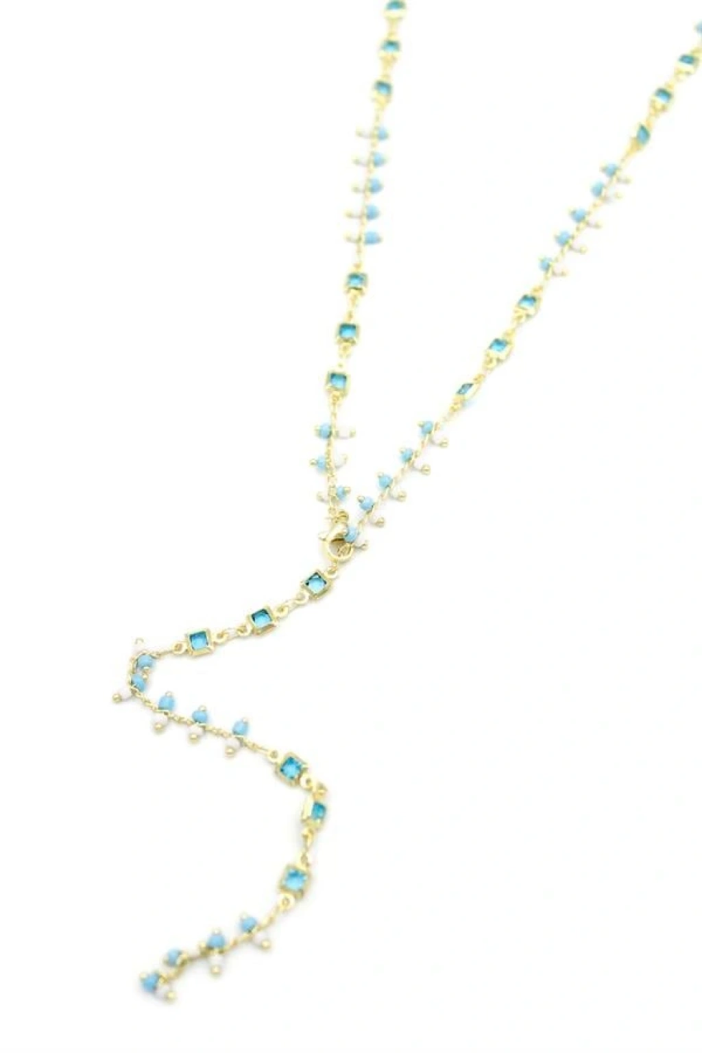 Mavi Taşlı Y Kolye - Altın