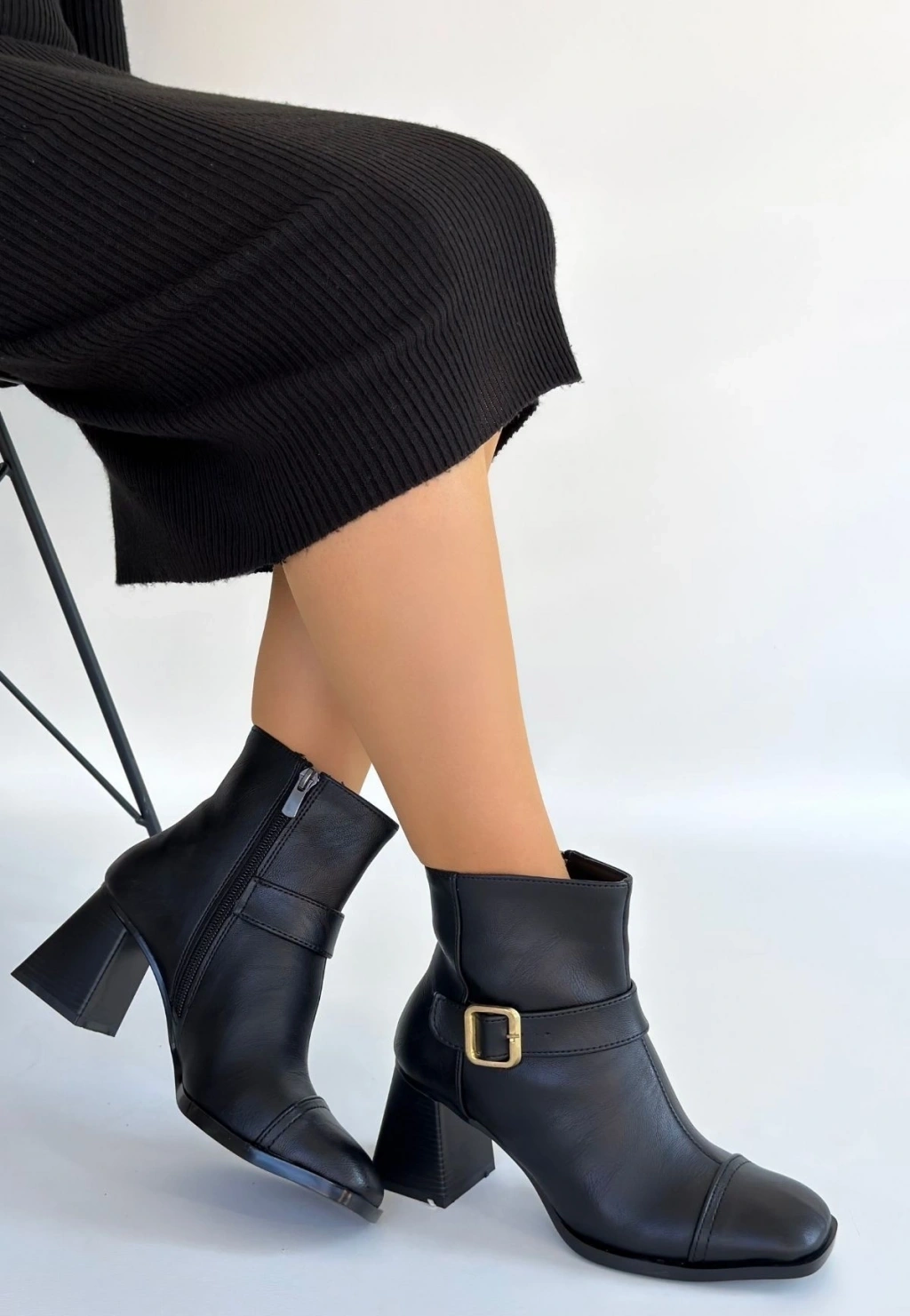 BİÇOMİ Mejjo Siyah Cilt Topuklu Bot