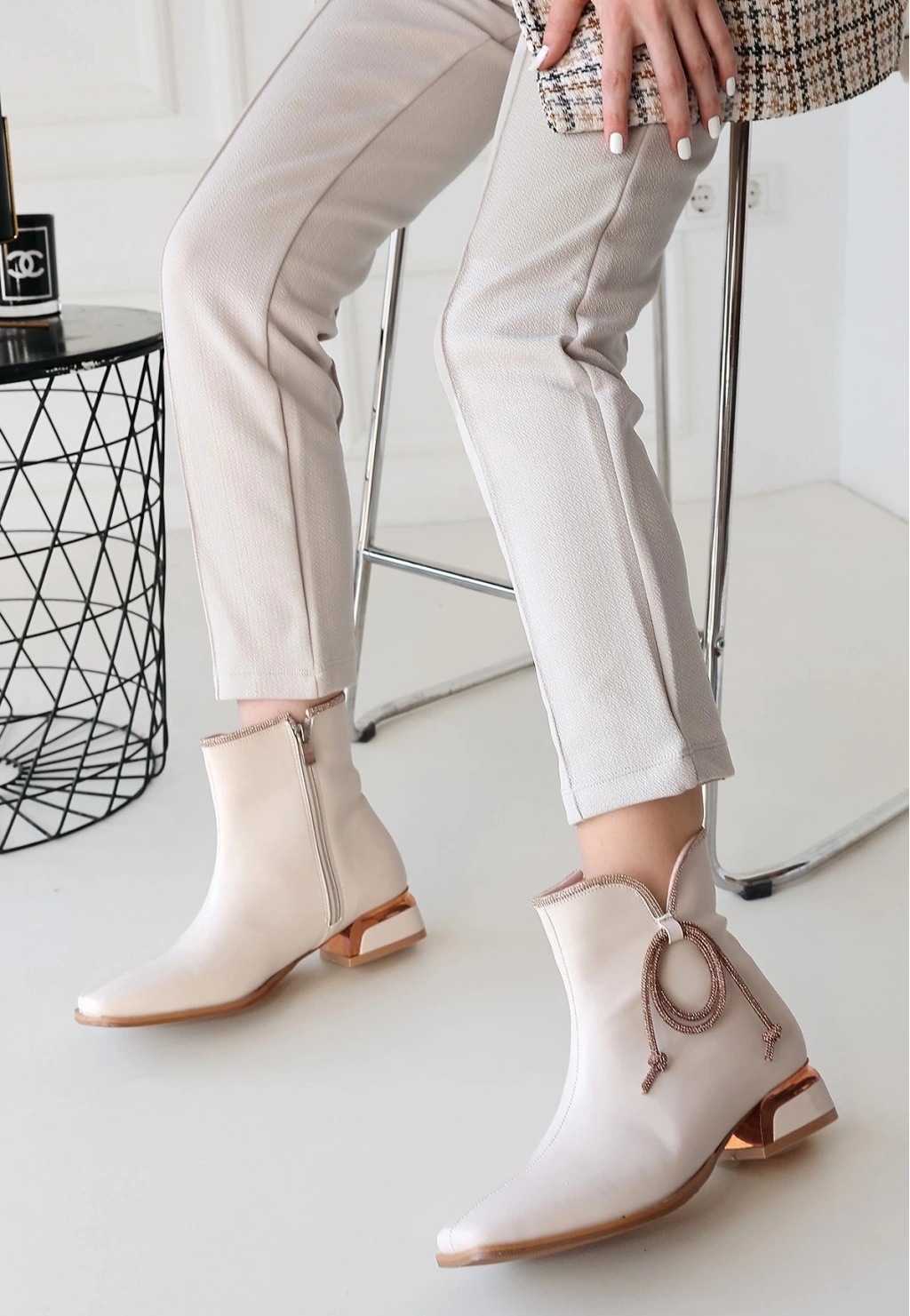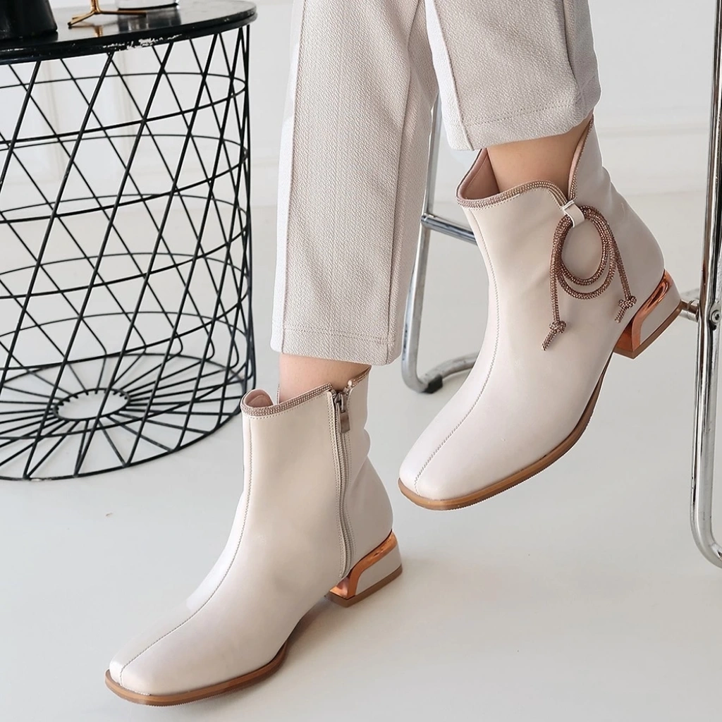 BİÇOMİ Melina Bej Cilt Topuklu Bot