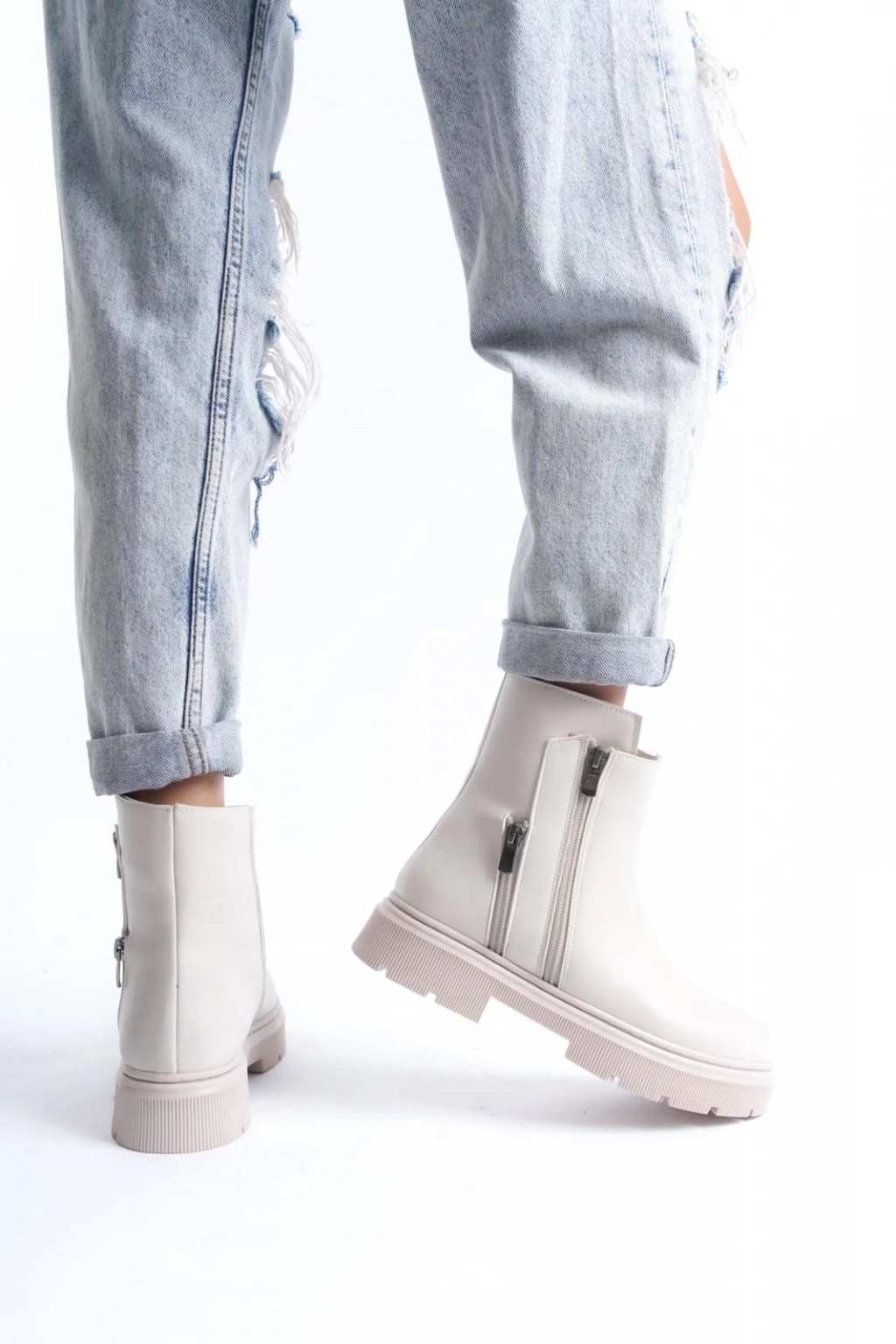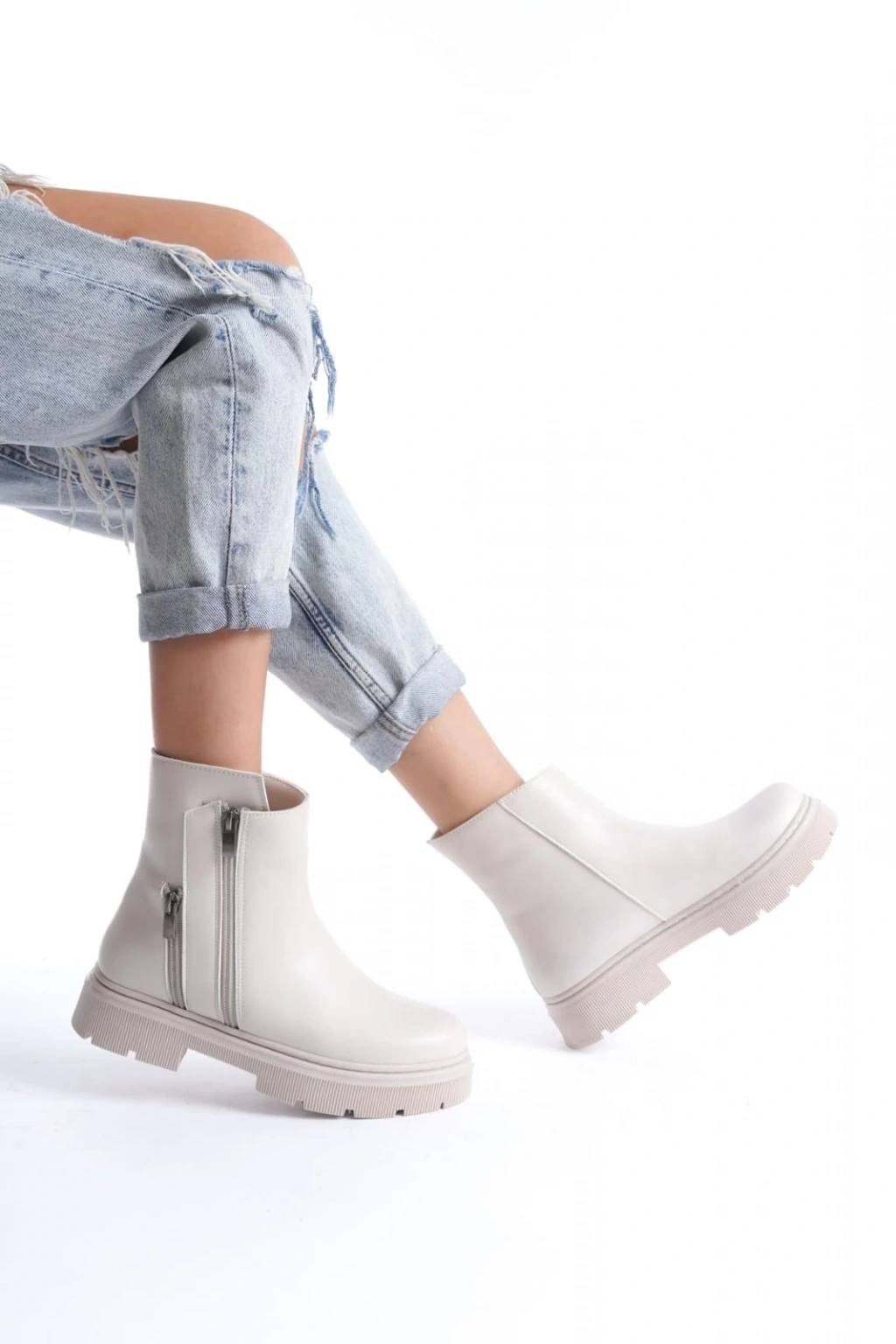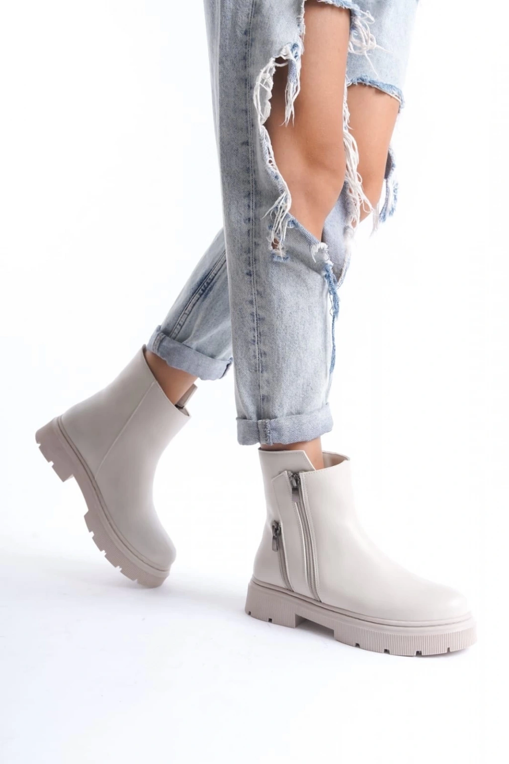 Detay : Topuklu Yandan Fermuarlı Bağcıklı Bot