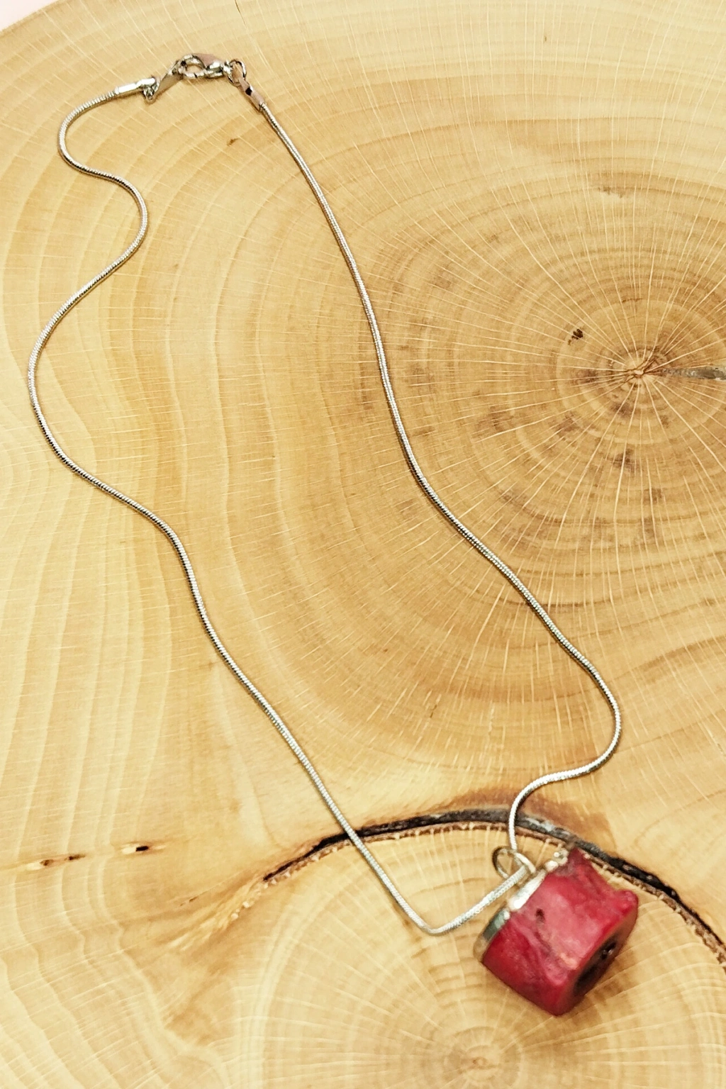 biçomi Mercan Doğal Taşı Zincirli El Yapımı Kolye Uç: 1,5 cm Zincir: 20 cm Kutulu