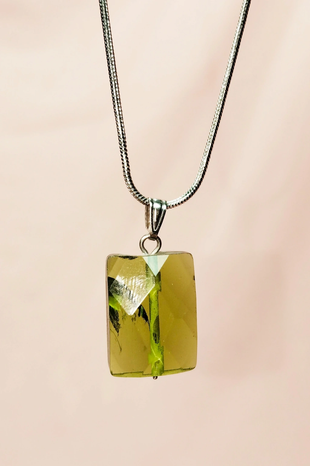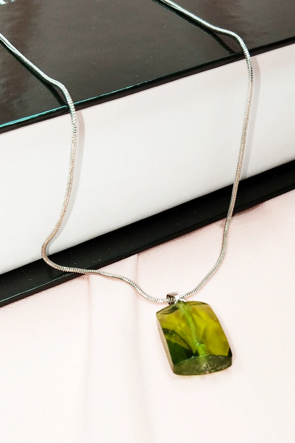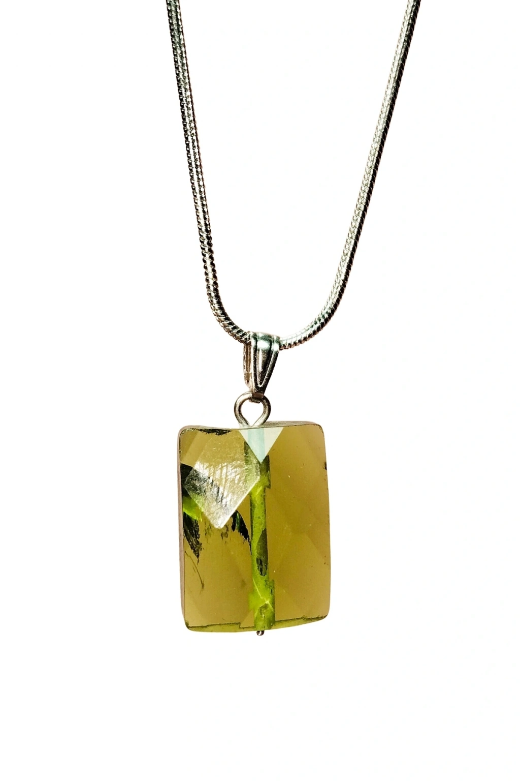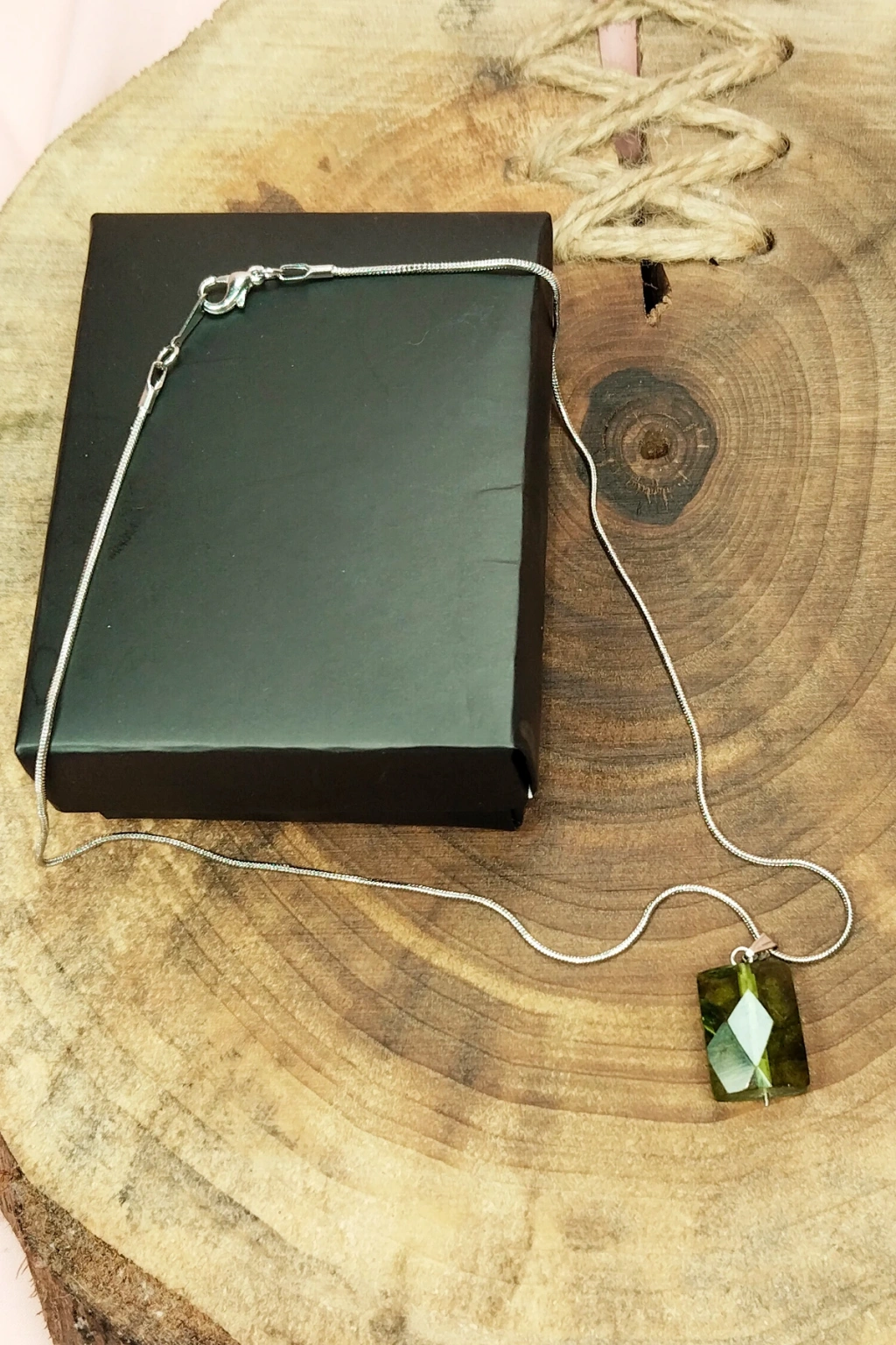 Moldavit Doğal Taşı Zincirli El Yapımı Kolye Uç: 2 cm Zincir: 20 cm Kutulu