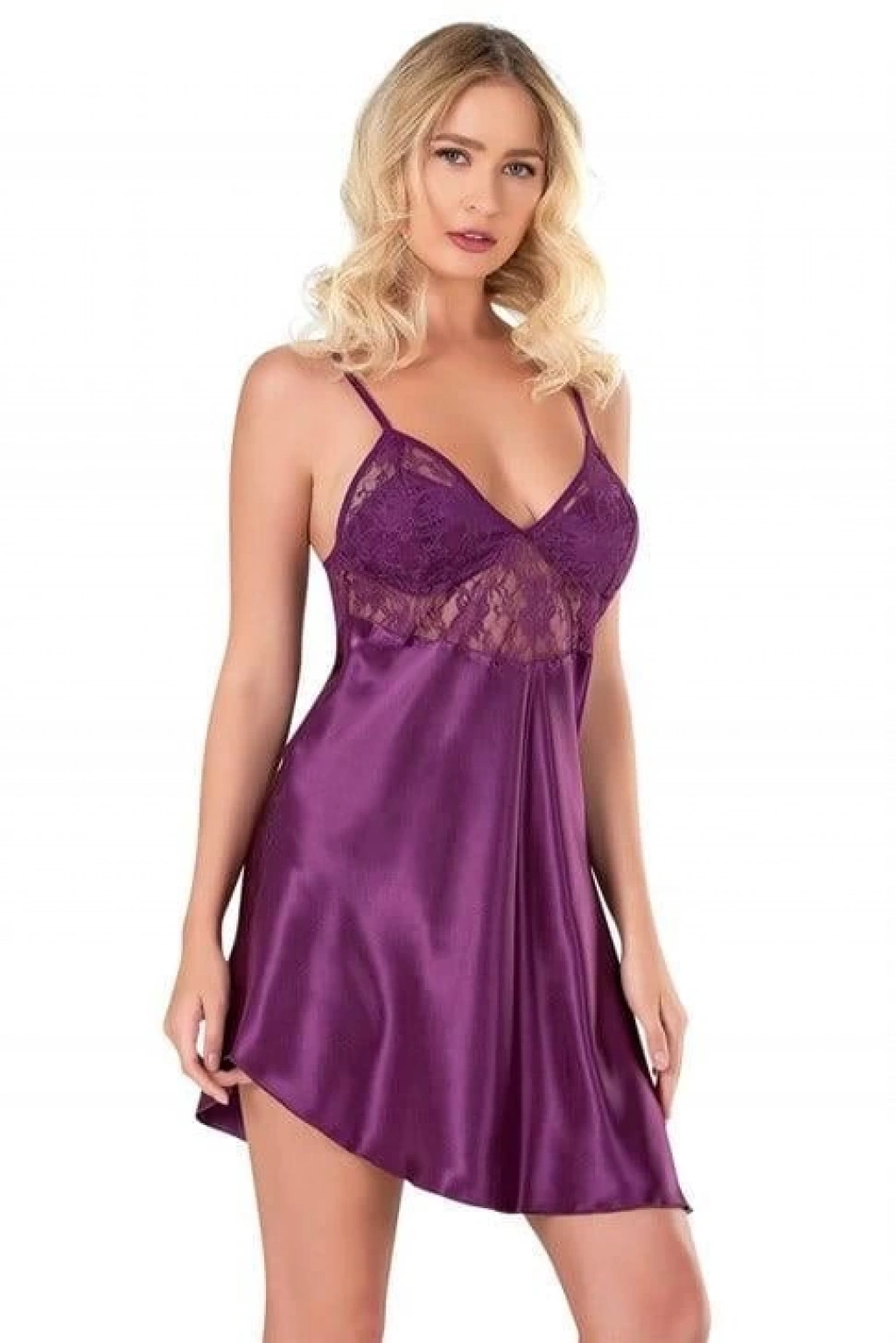 Bicomi Mor Kısa Saten Gecelik 8100