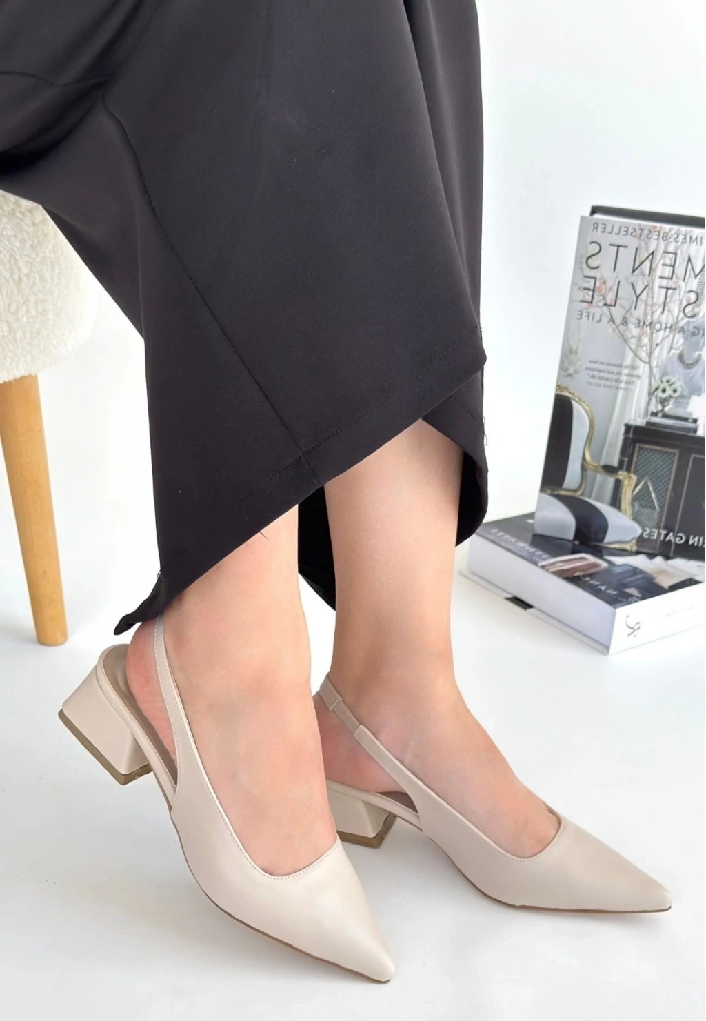 BİÇOMİ Morji Bej Cilt Topuklu Ayakkabı