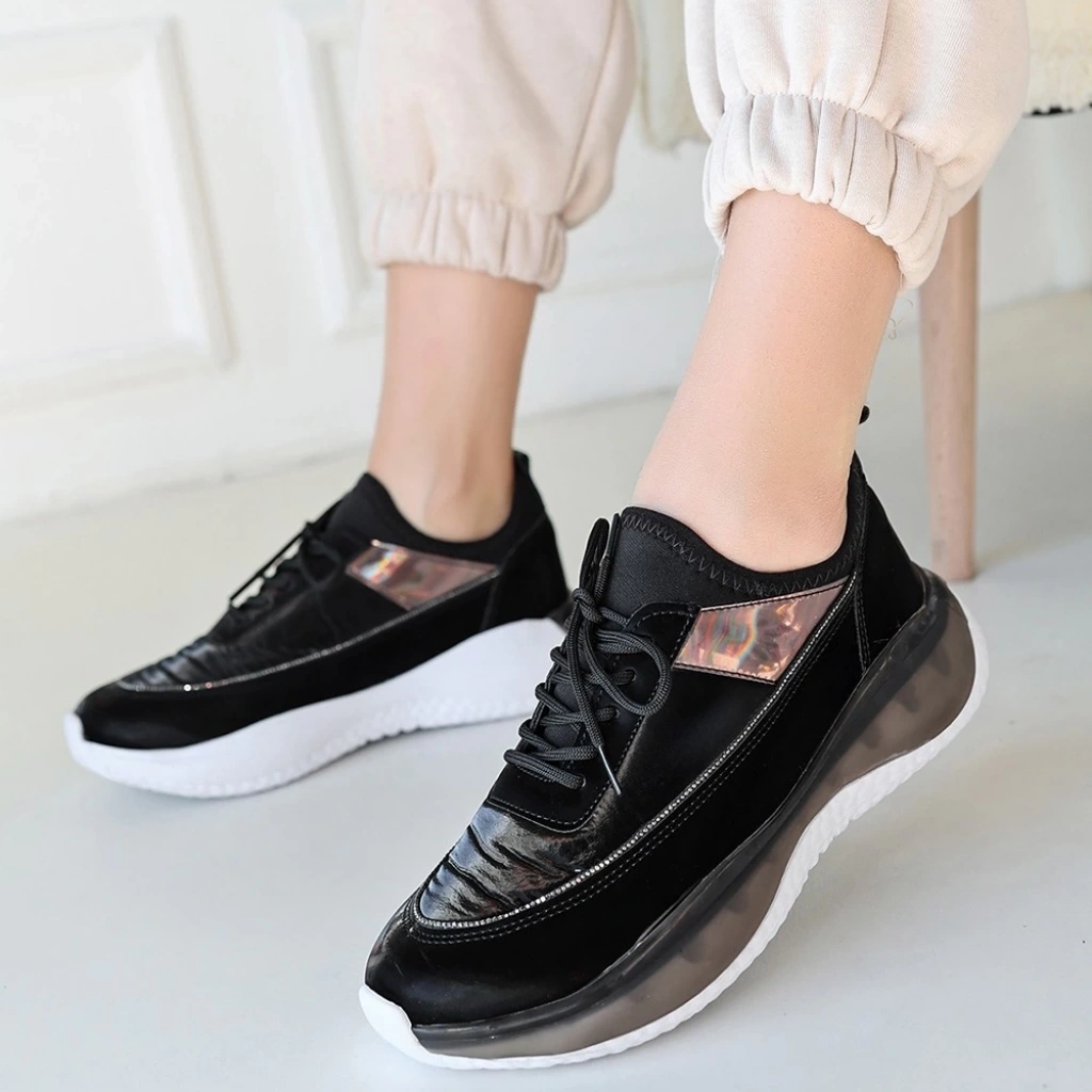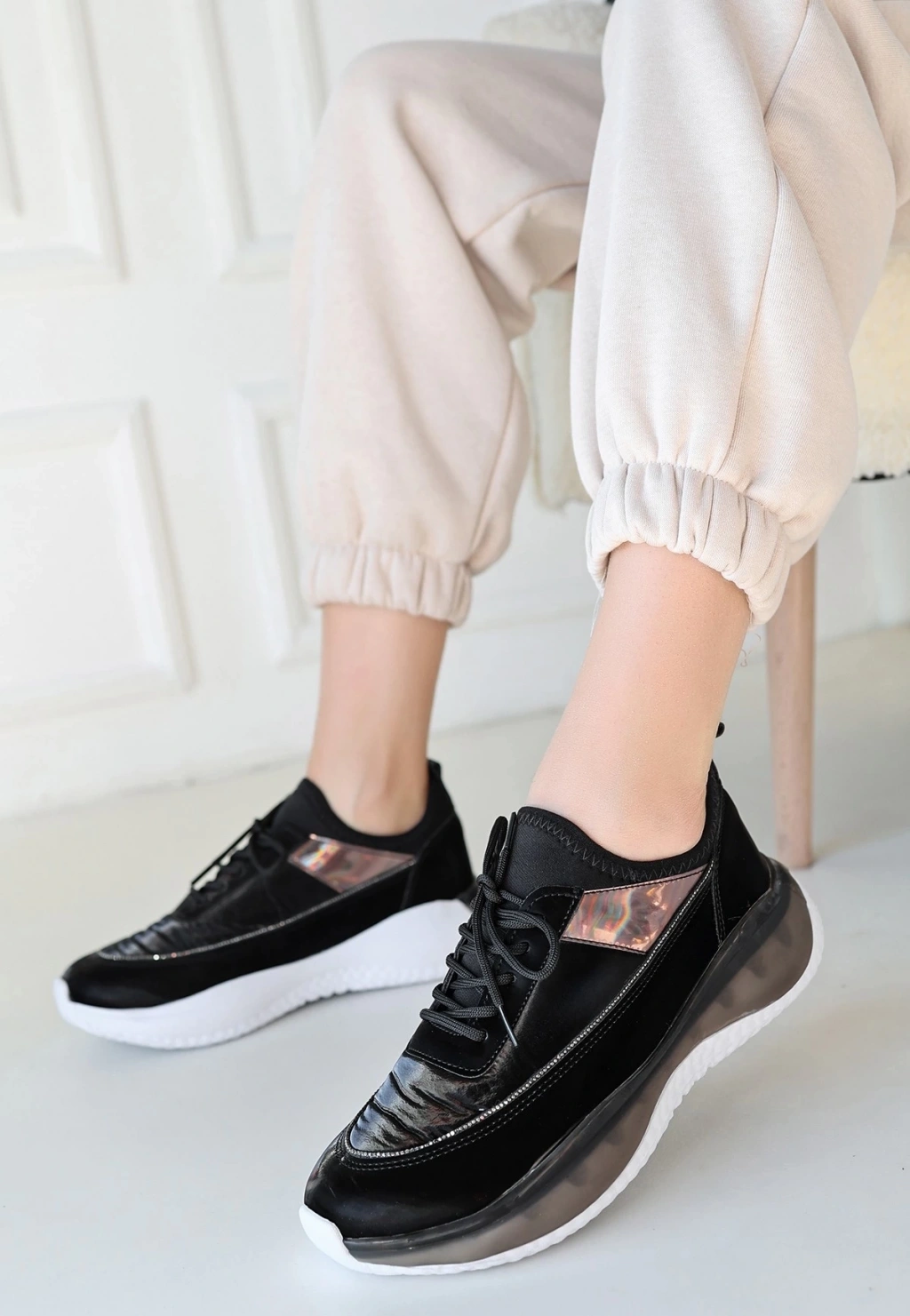 BİÇOMİ Nadio Siyah Rugan Bağcıklı Spor Ayakkabı