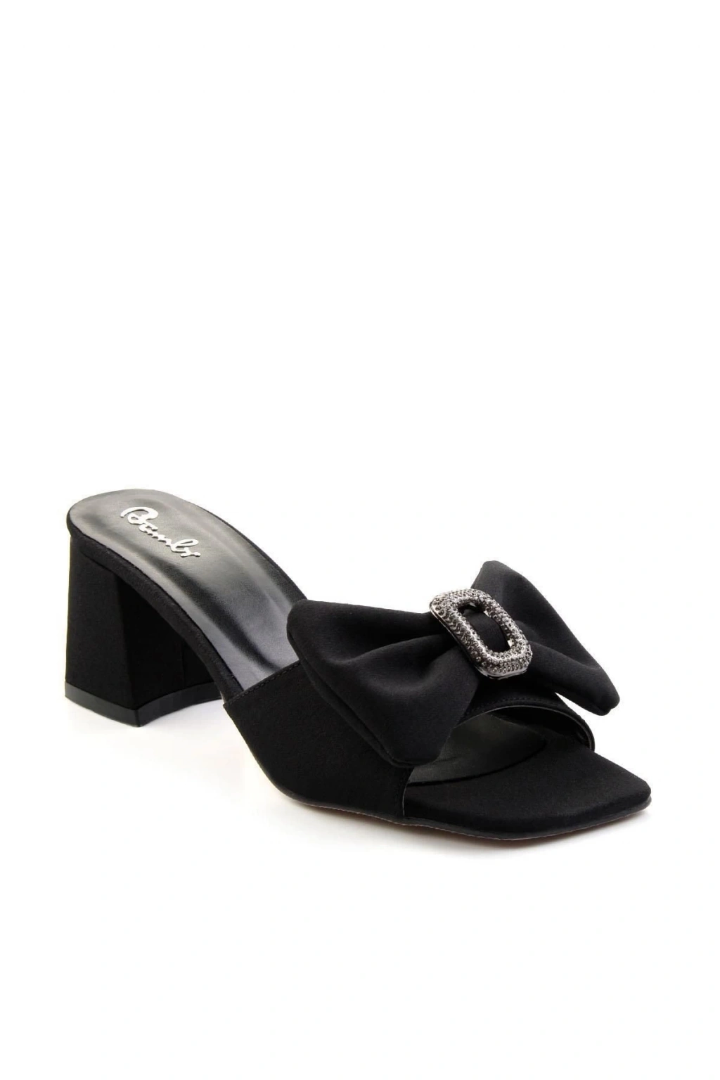 BİÇOMİ Niyyar Siyah Cilt Topuklu Terlik
