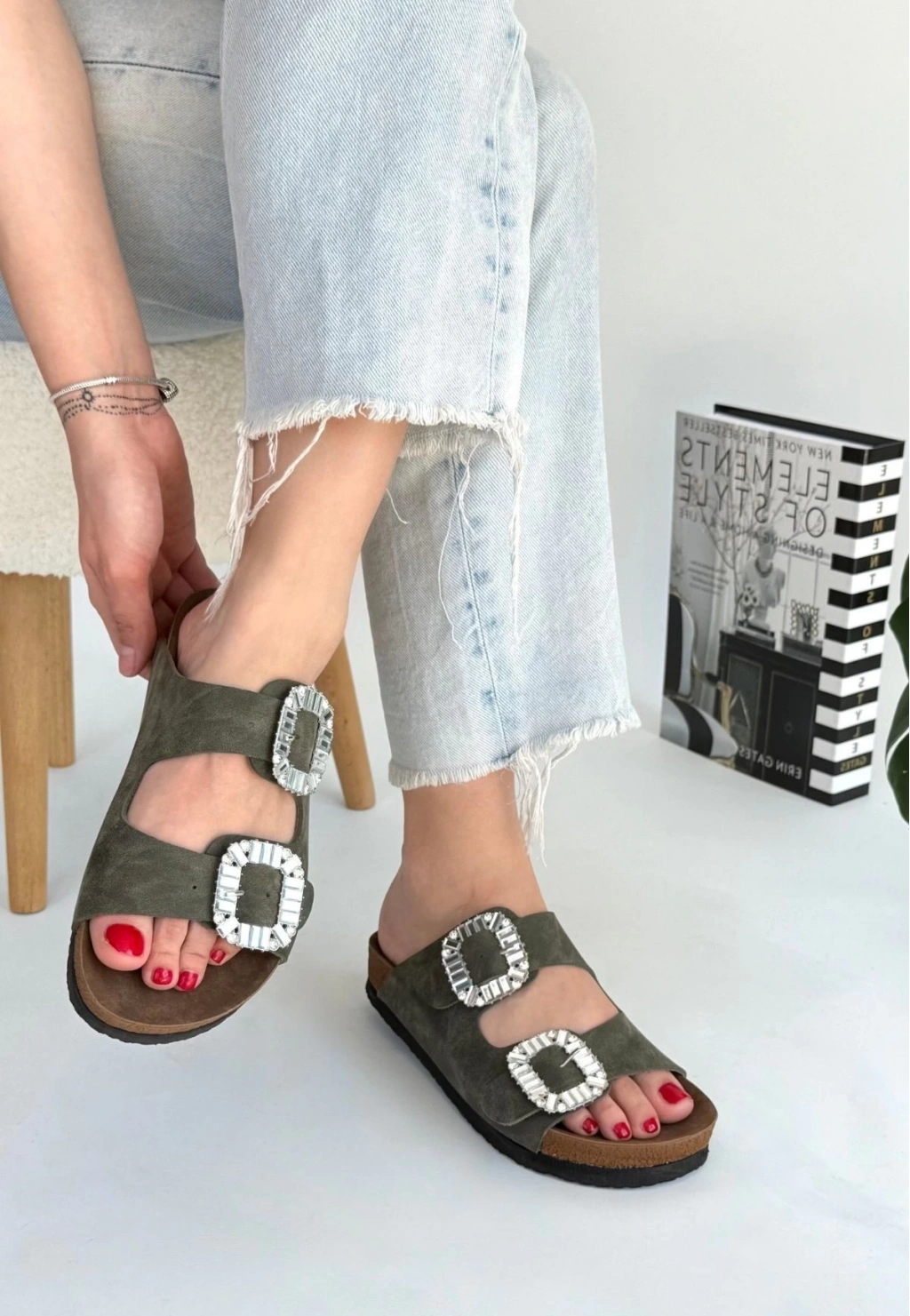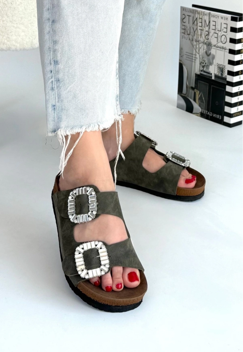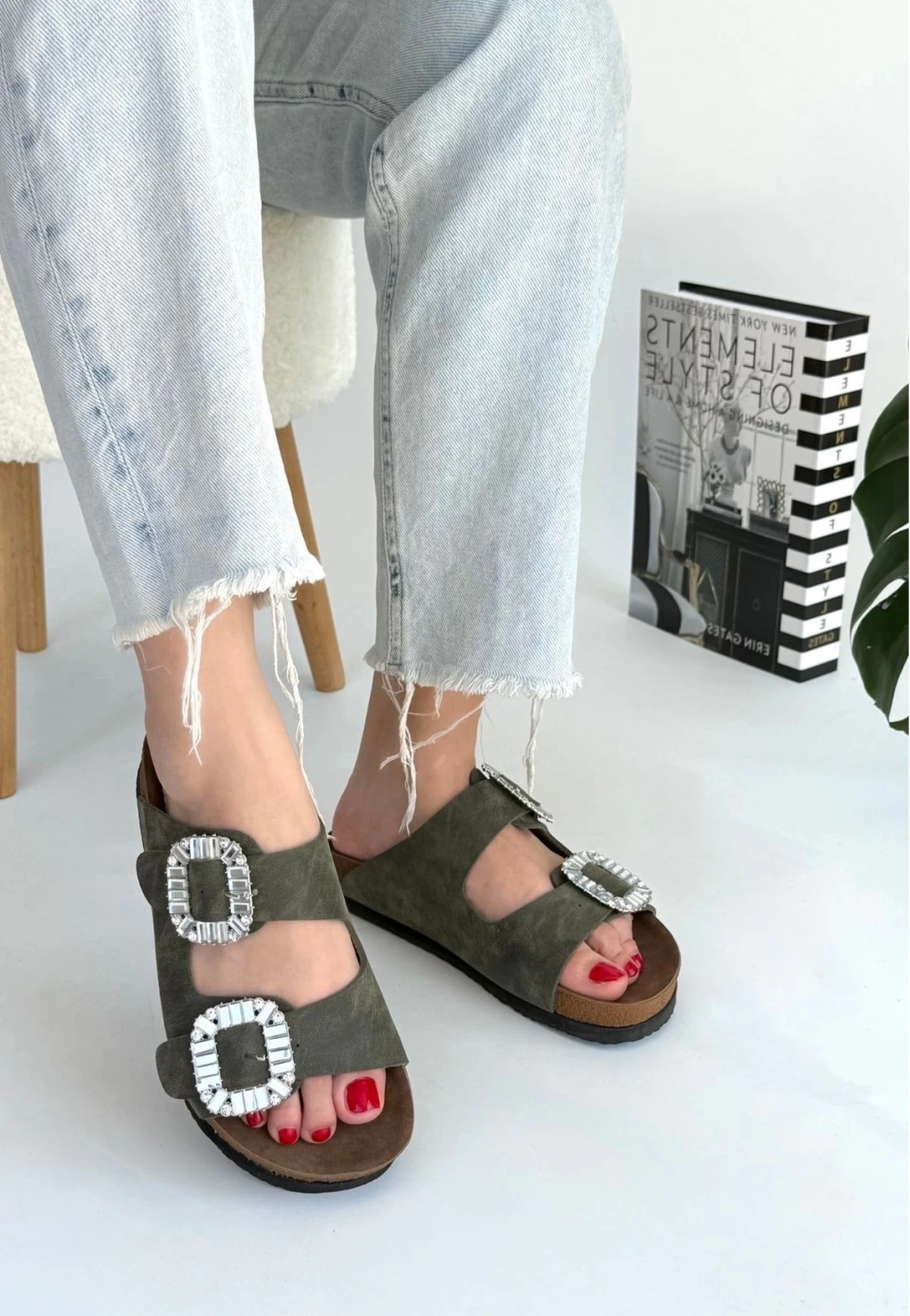 BİÇOMİ Nool Yeşil Nubuk Terlik