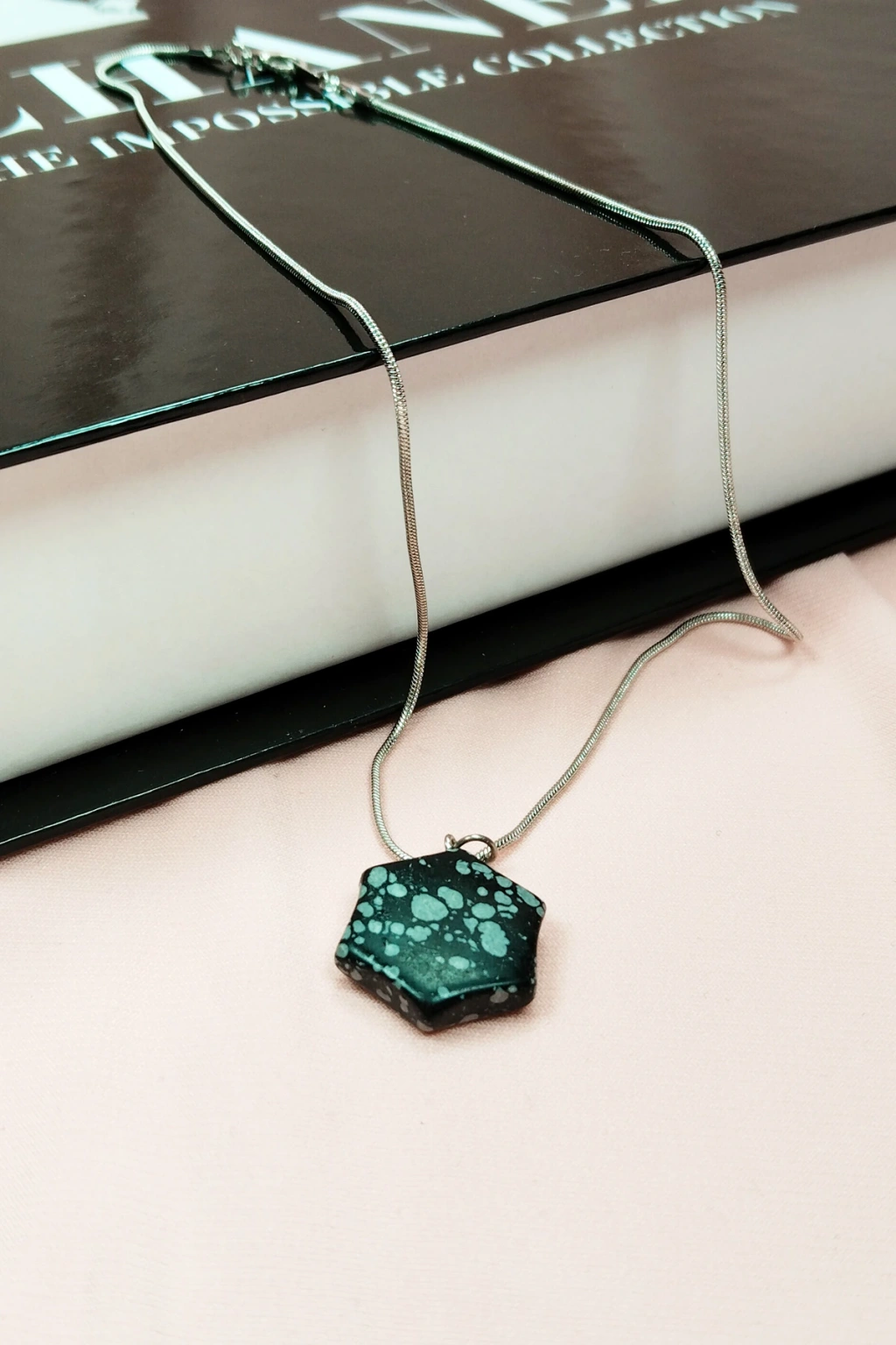 biçomi Kalsedon Doğal Taşı Zincirli El Yapımı Kolye Uç: 1,5 cm Zincir: 20 cm Kutulu