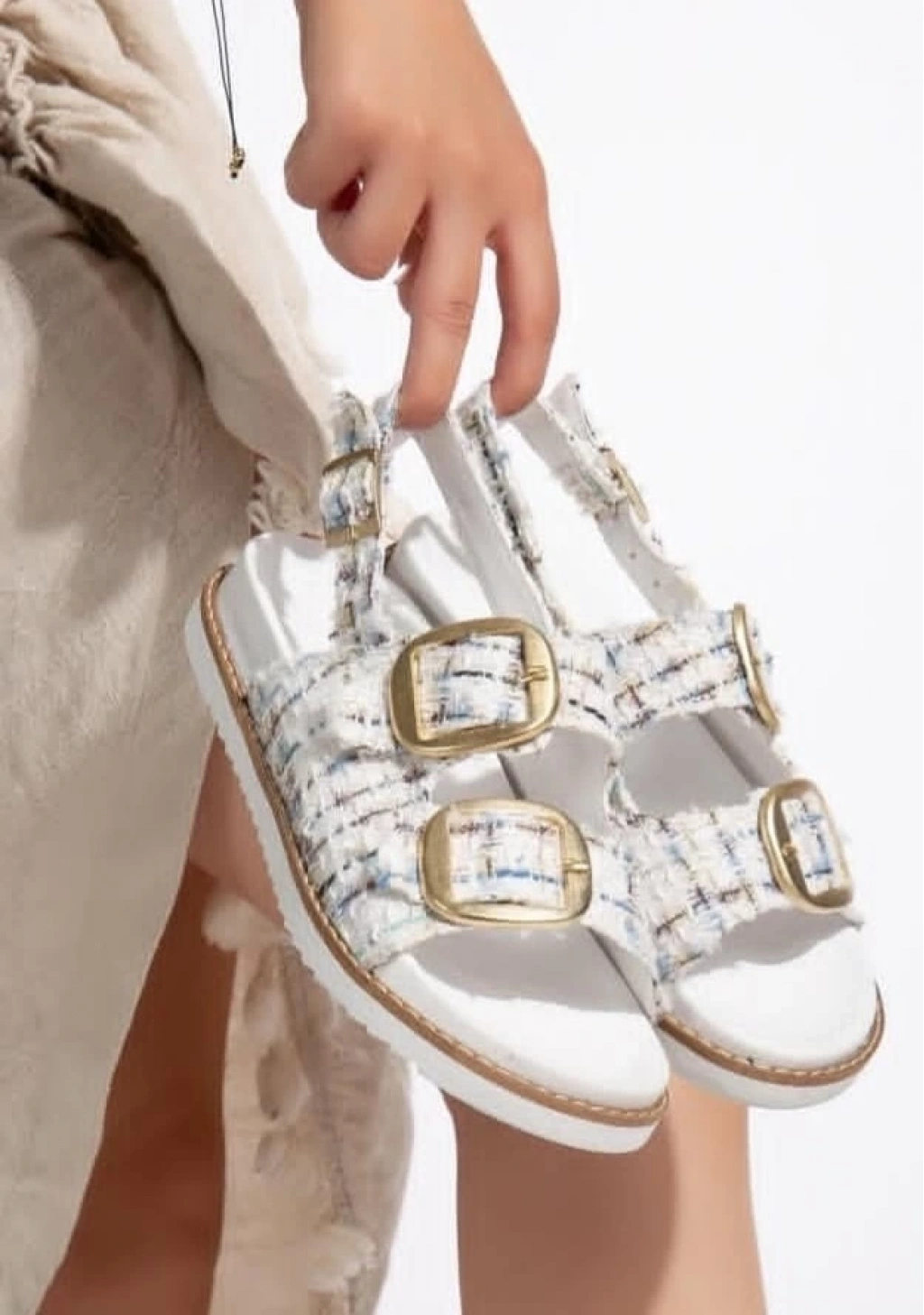 BİÇOMİ Olira Beyaz Simli Kemerli Sandalet