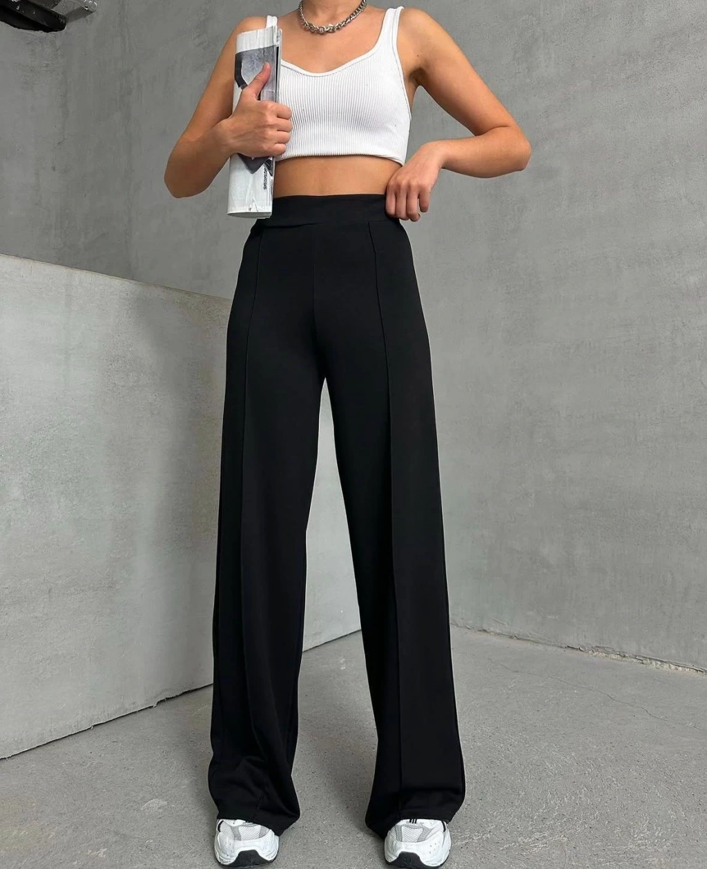 KAZAX markası tarafından tasarlanan siyah önü çımalı pantolon şıklığı ve rahatlığı bir arada sunuyor.