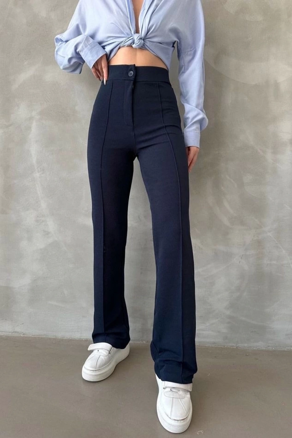 Yüksek bel detayı ile vücudu rahatça saran bir kesime sahiptir.