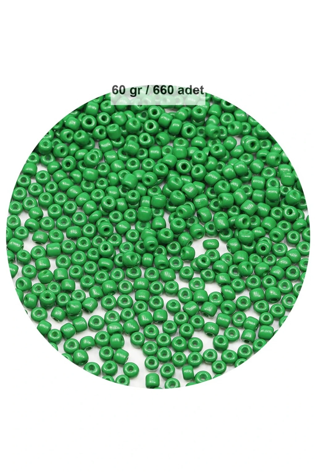 biçomi Opak Yeşil Renk 4 mm Yaklaşık 660 adet / 60 gram Cam Boncuk Oya Yazma Bileklik ve Kolye
