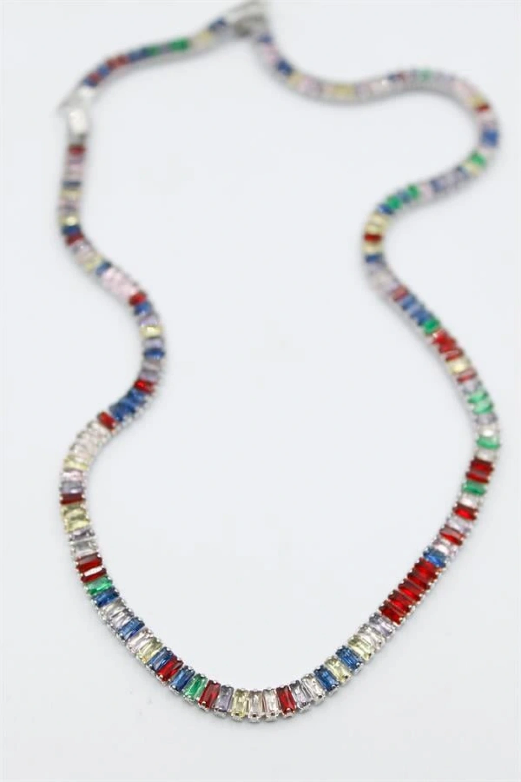 Orta Boy Renkli Su Yolu Kolye - Gümüş
