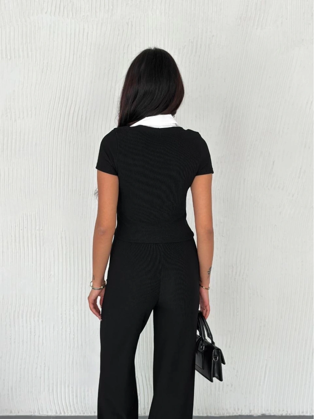 Ottoman kumaşın zarif dokusunu taşıyan bu beyaz gömlek yaka takım, gardırobunuzun vazgeçilmezi olmaya aday! Hem şık hem de rahat tasarımı ile günün her anında şıklığınızı ön plana çıkaracak.