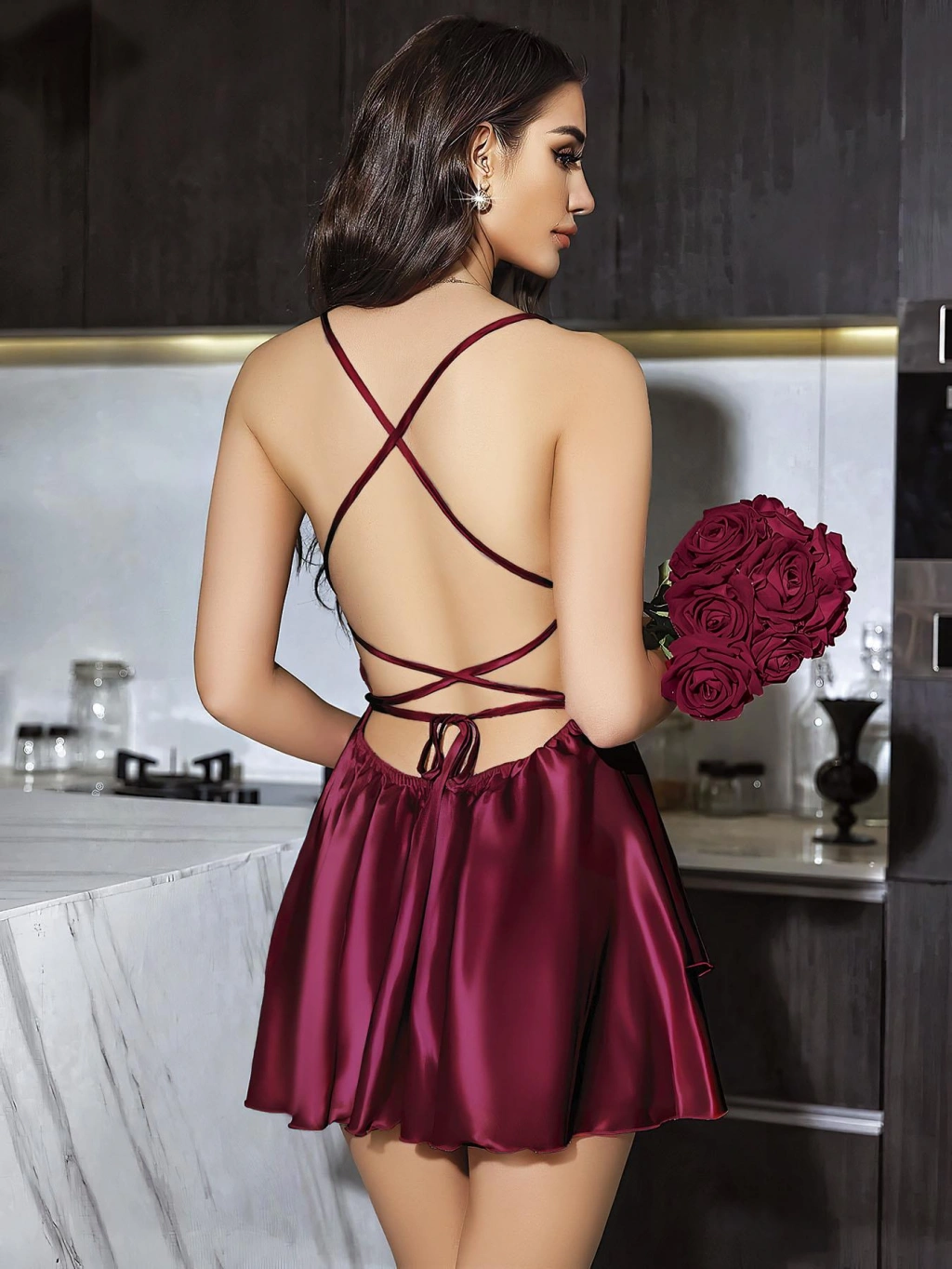 ?✨ Sırt Dekoltesiyle Büyüleyen Bordo Saten Zarafeti!