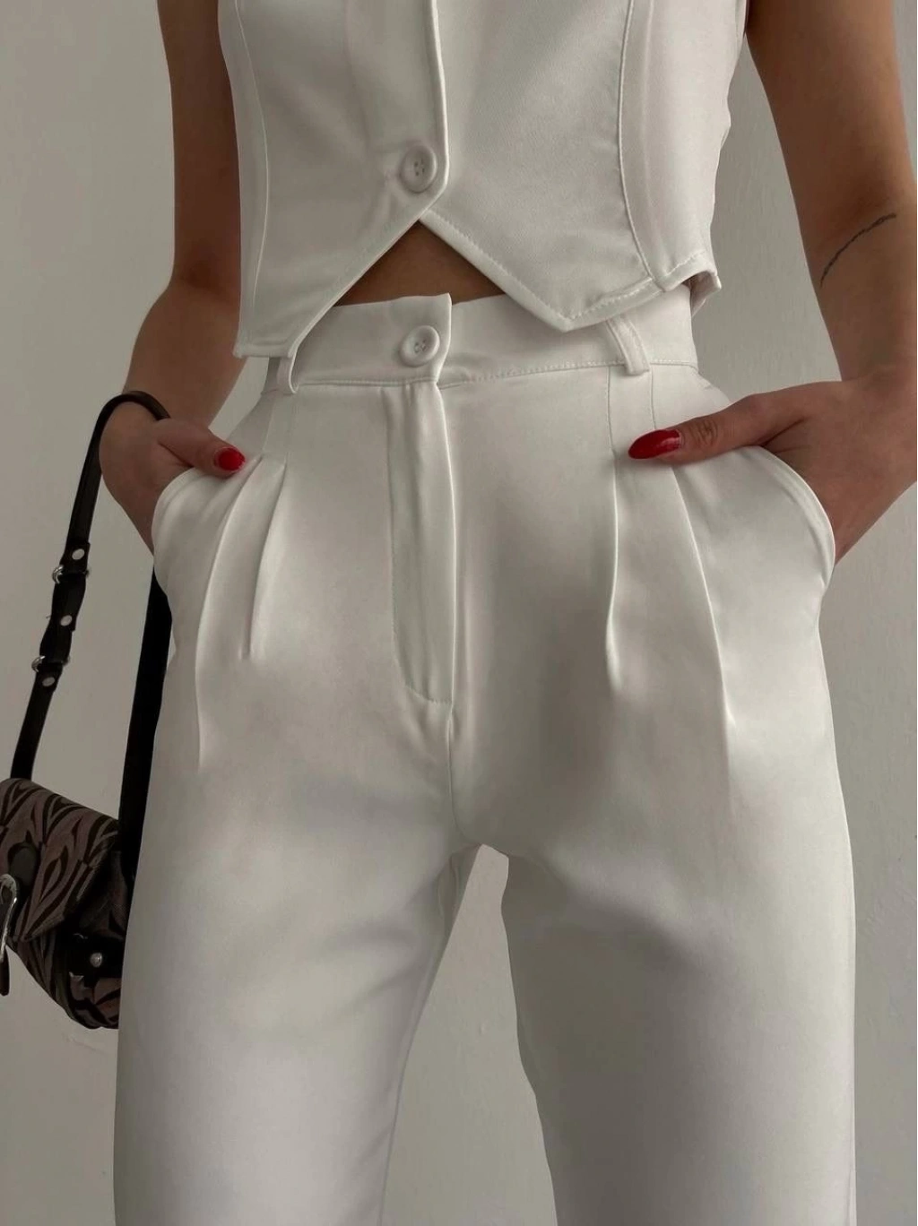 Beyaz rengiyle her renk üst kıyafet ile kolayca kombinlenebilir.