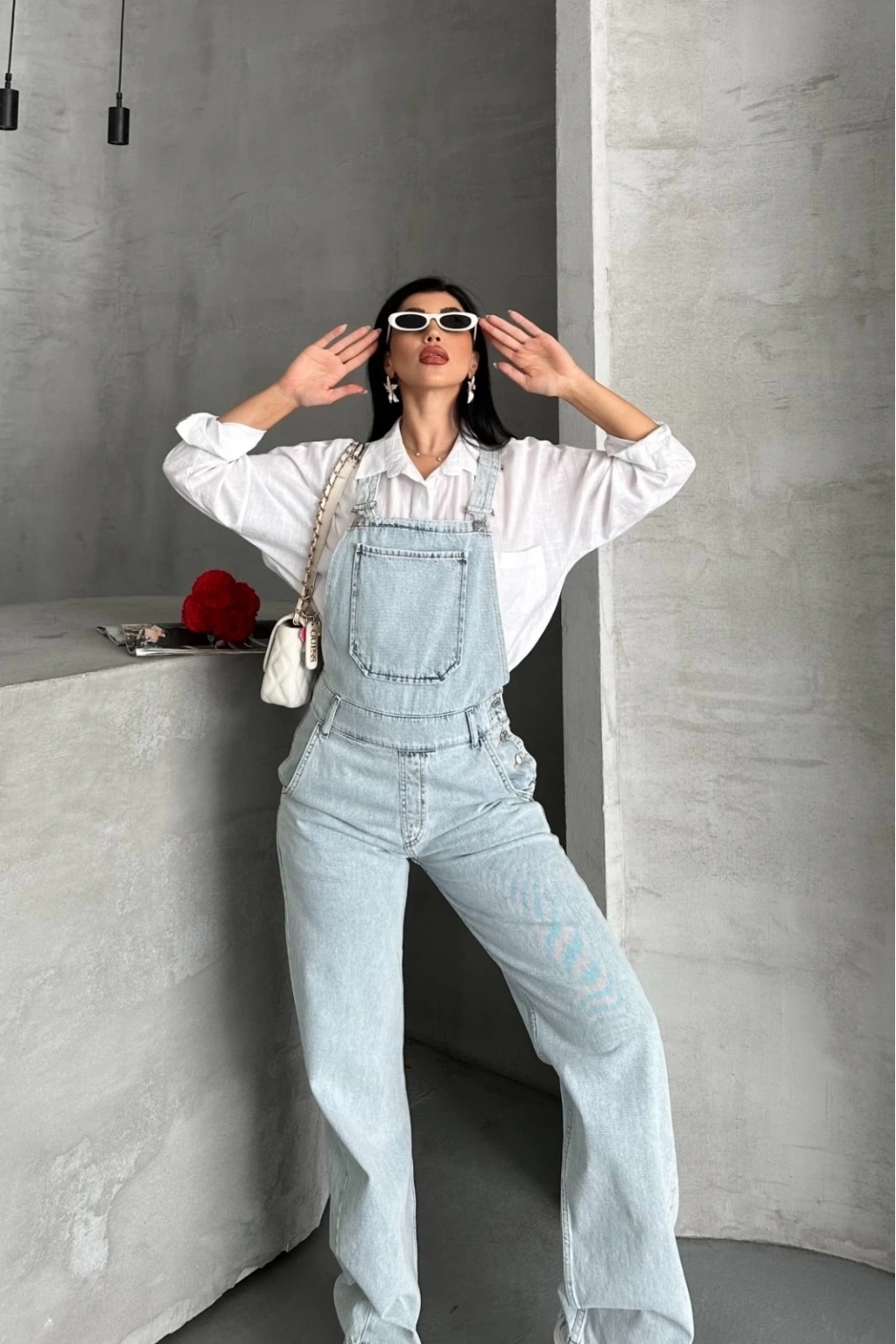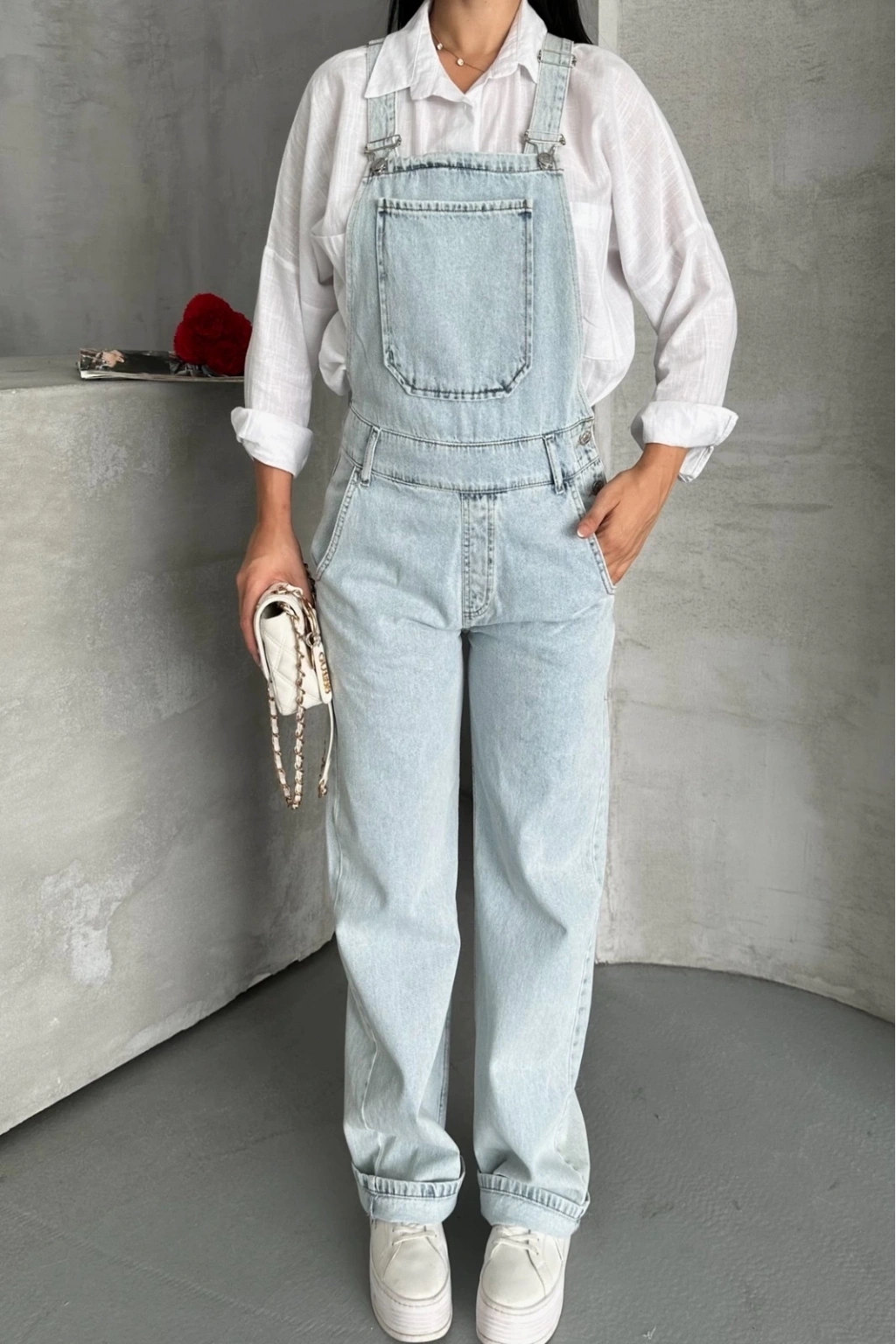 Trendleri takip eden kadınlar için ideal bir seçenek olan mavi salopet, gardırobunuzun vazgeçilmez parçalarından biri olmaya aday. Hemen sepete ekleyin ve tarzınıza tarz katın!