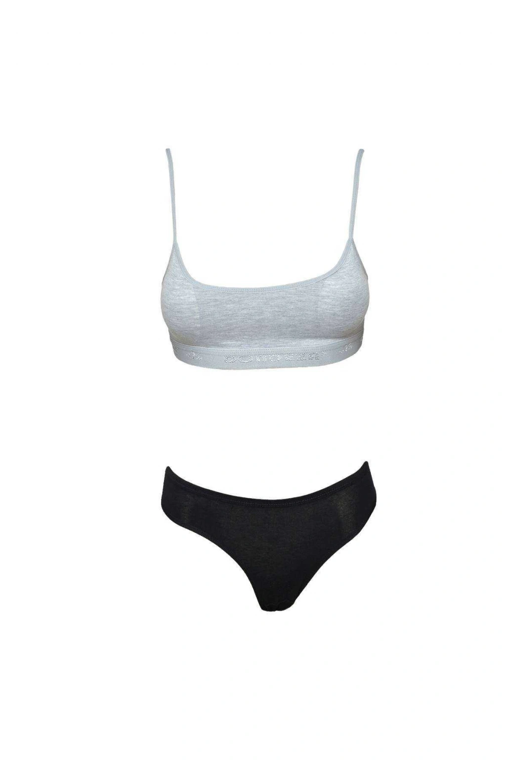 PAKET İÇERİĞİ; 1 ADET GRİ PEDLİ BÜSTİYER 1 ADET SİYAH LİKRALI SLİP KÜLOT