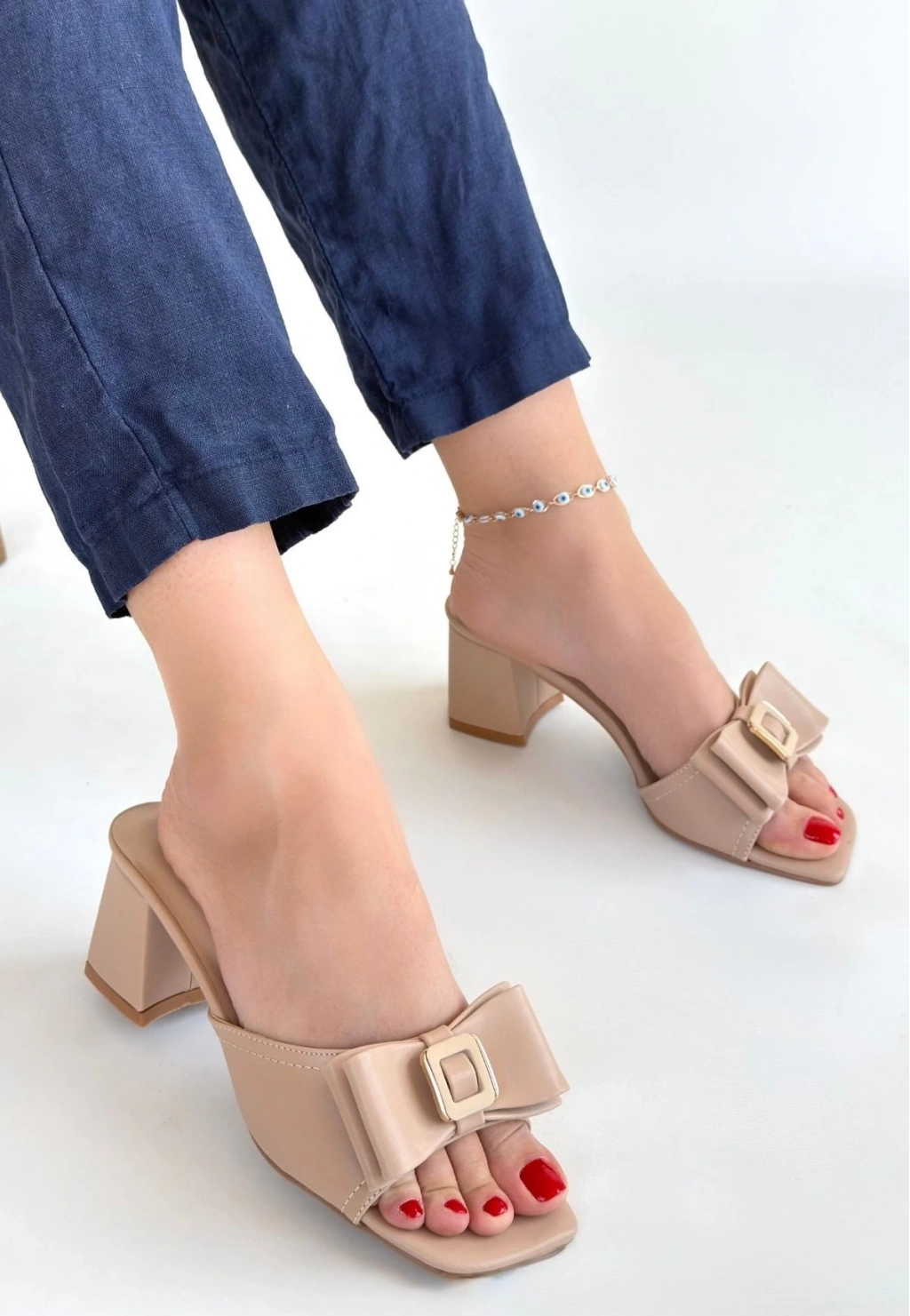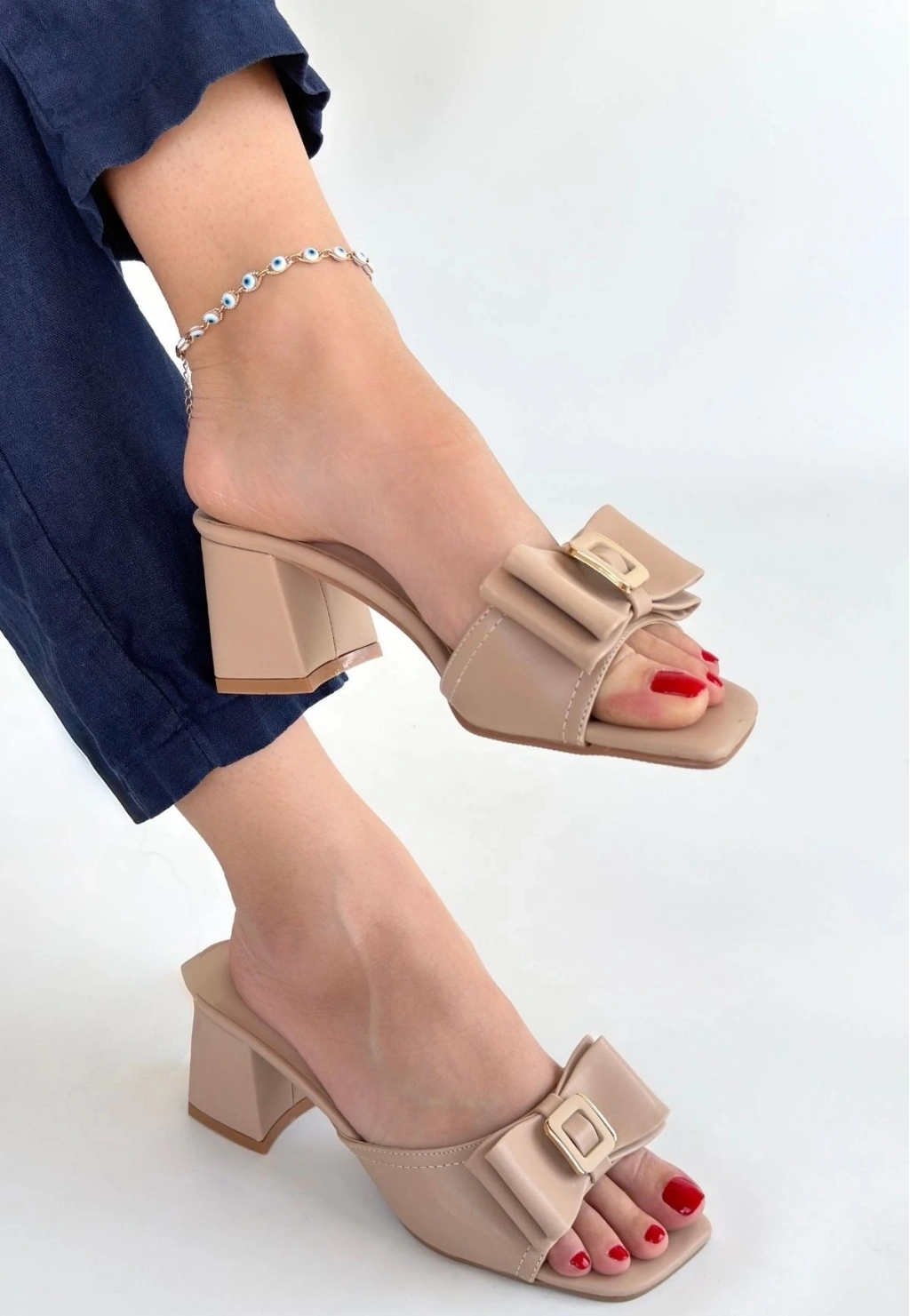 BİÇOMİ Pier Nude Cilt Topuklu Terlik