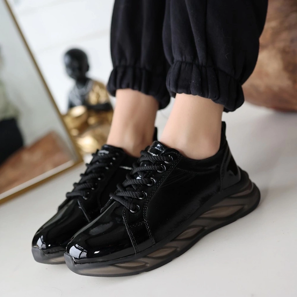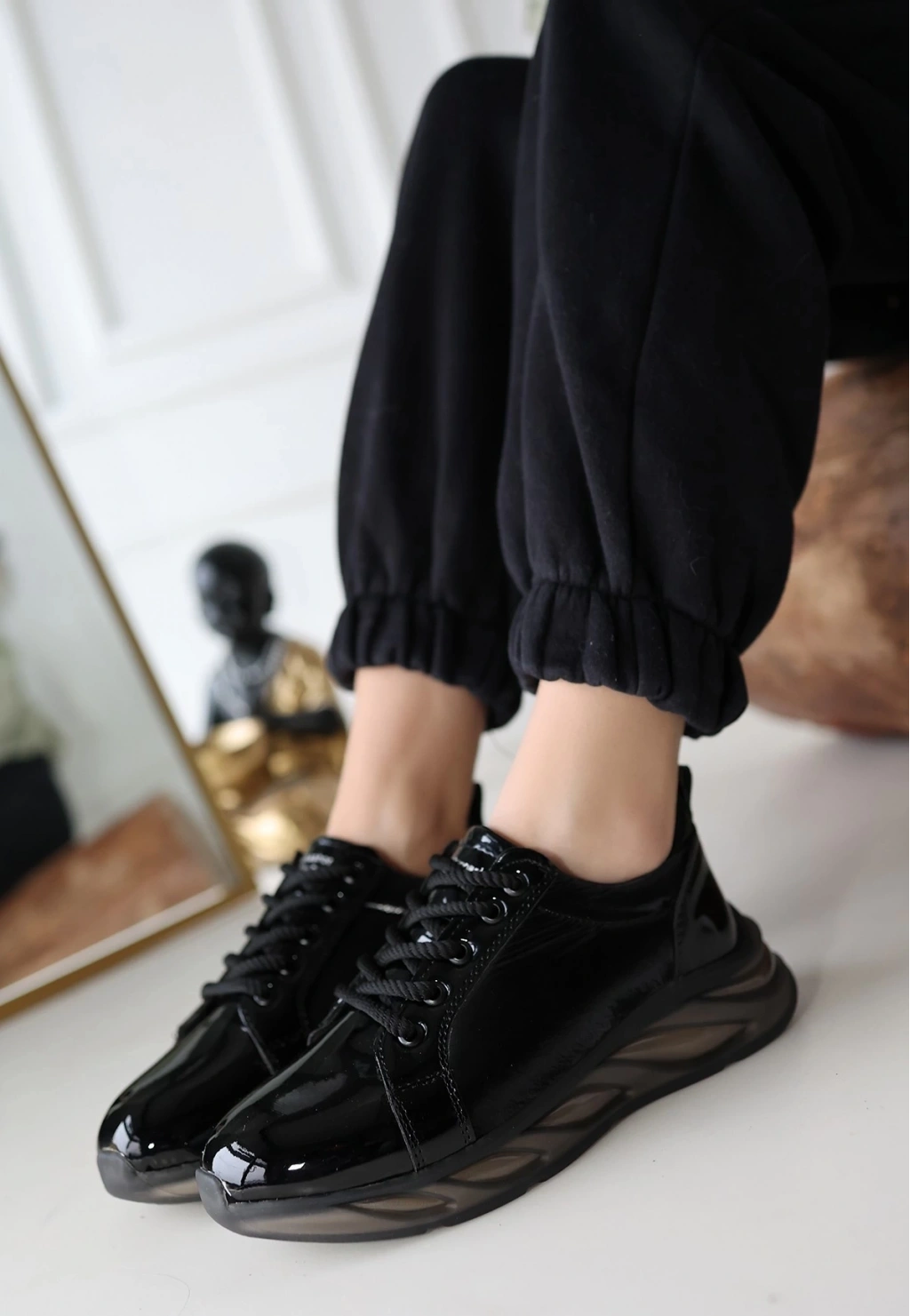 BİÇOMİ Piona Siyah Rugan Gri Tabanlı Spor Ayakkabı