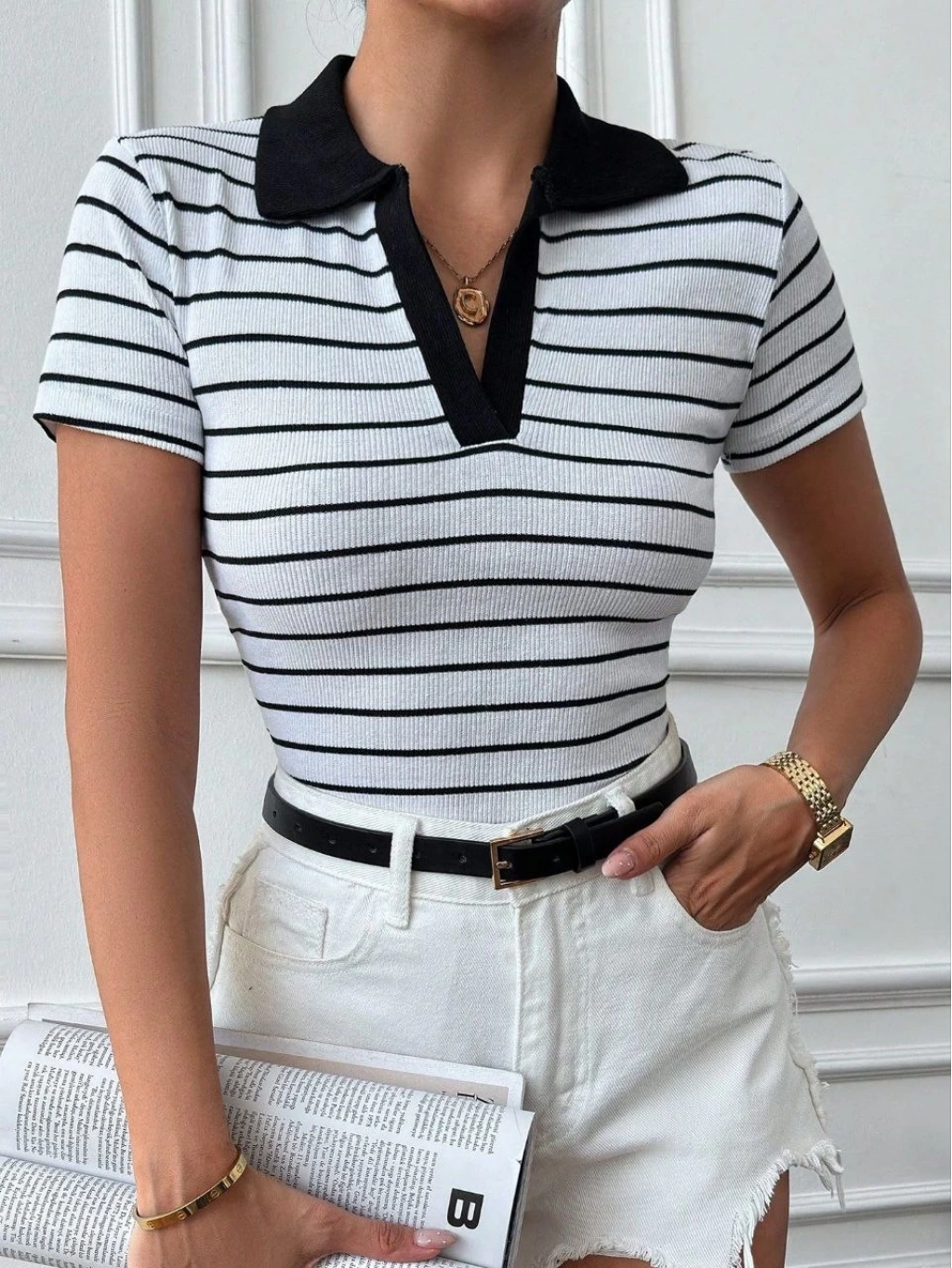 Yeni sezonun trend parçalarından biri olan Beyazsiyah Polo Yaka Garnili Bluz, şıklığı ve rahatlığı bir arada sunuyor.