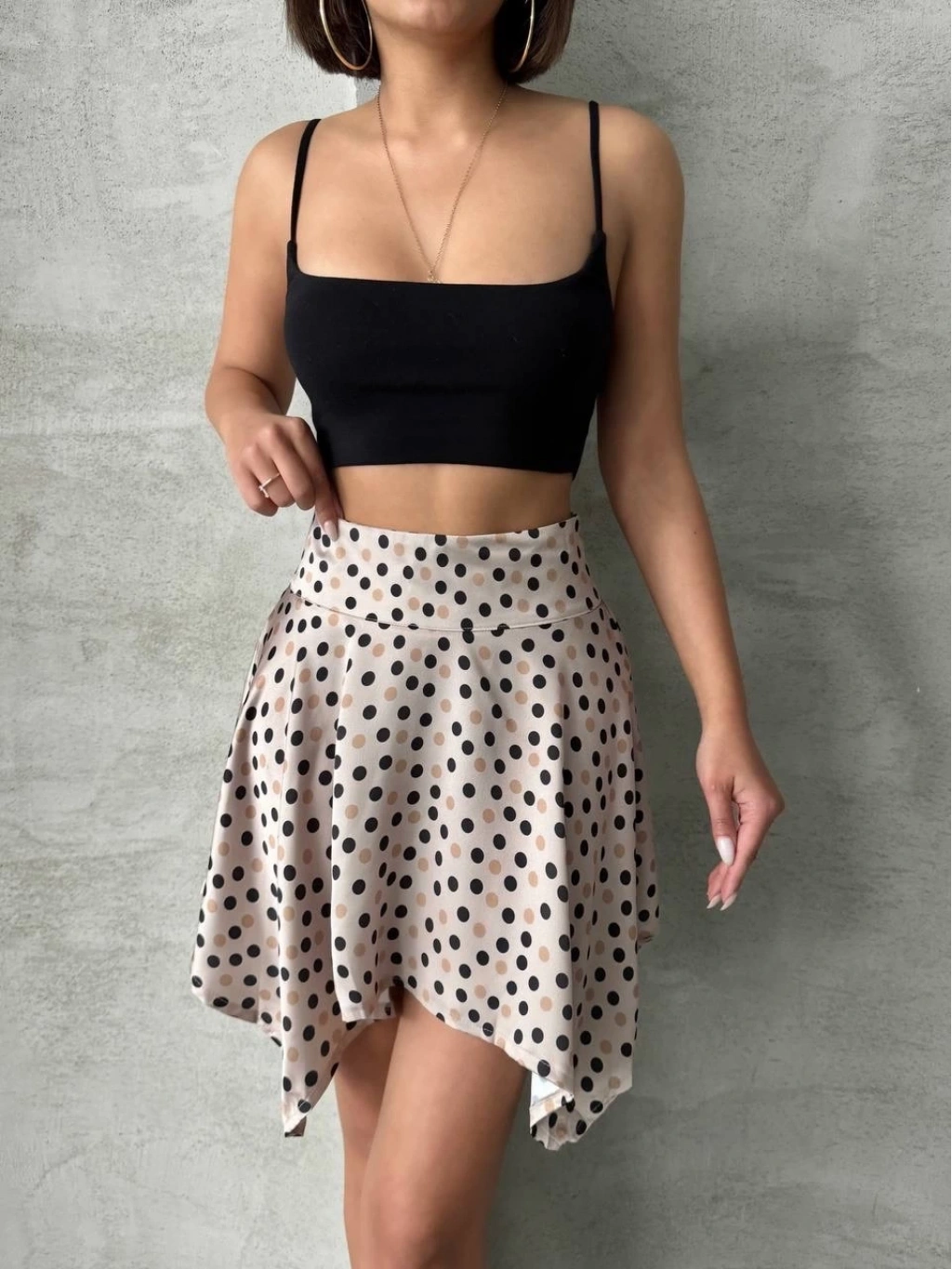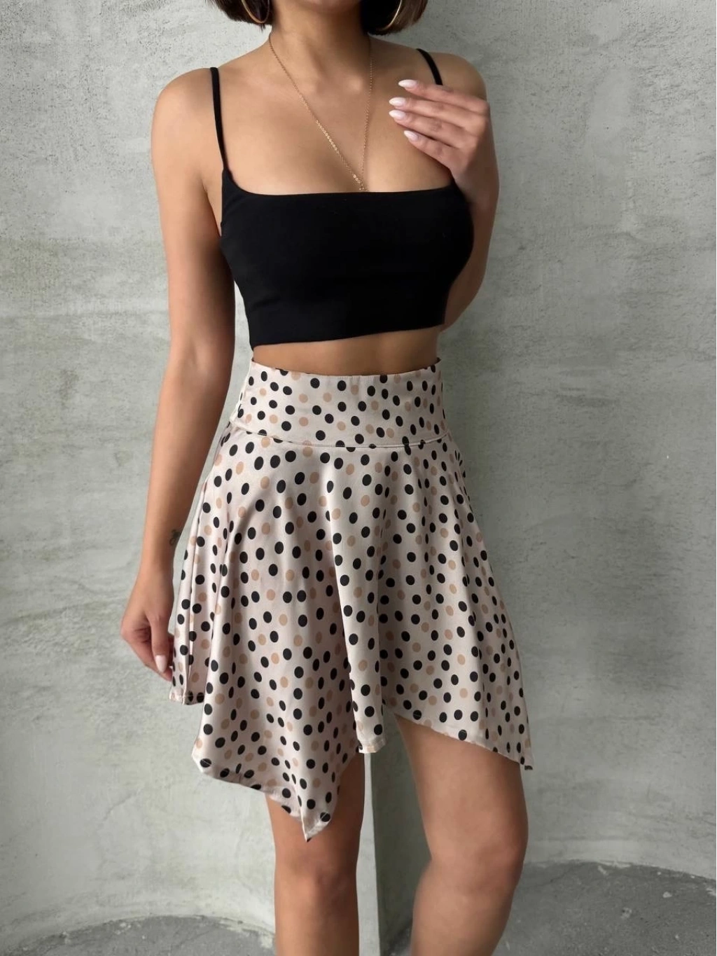 Şıklığı ve konforu bir arada arayan kadınların tercihi Puantiyeli Etek S25900, şimdi online mağazamızda sizleri bekliyor!