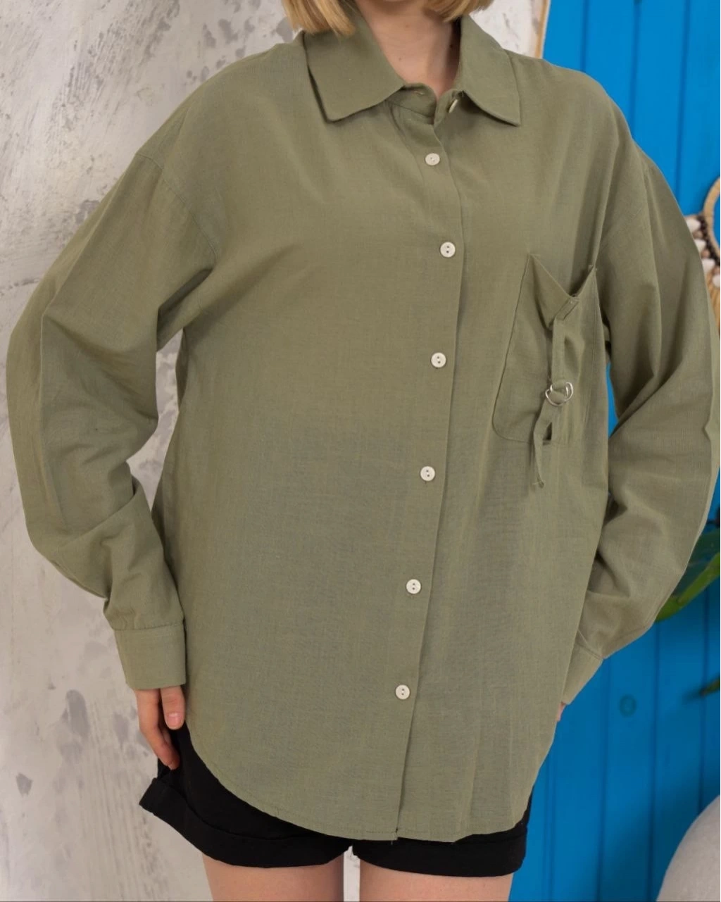 Bu haki renkli relax fit keten gömlek, şıklığı ve rahatlığı bir arada sunar. Hem günlük kullanıma hem de özel günlerde tercih edebileceğiniz şık bir parçadır.