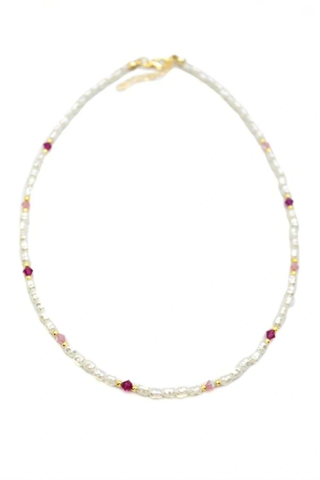 biçomi Renkli Boncuklu İnci Kolye - Fuşya