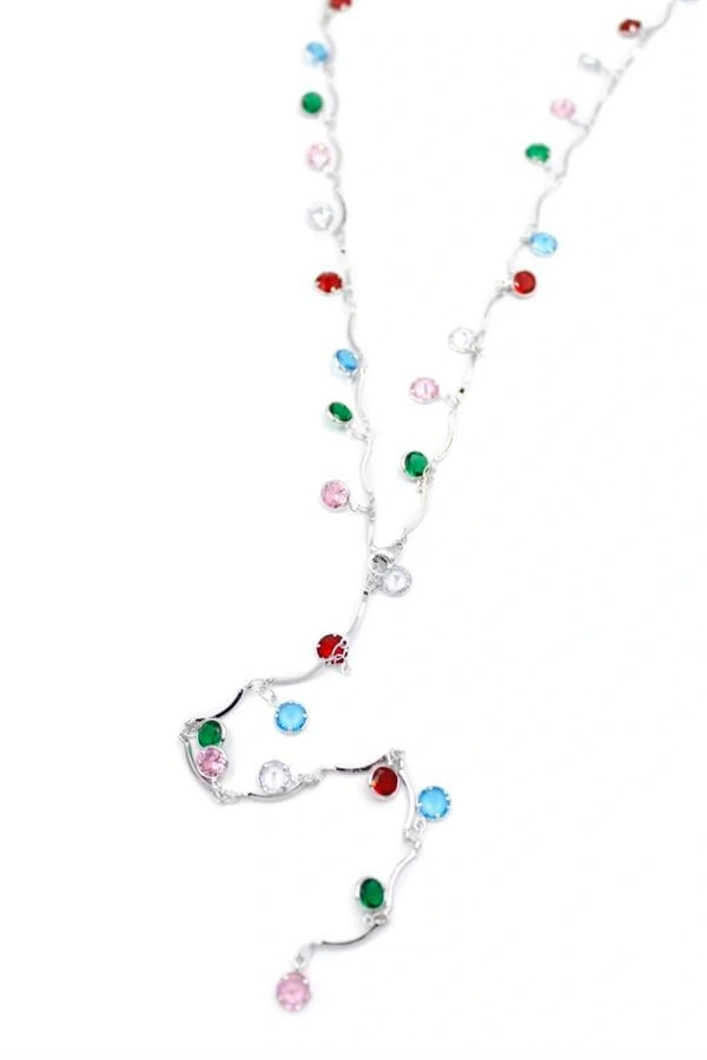 biçomi Renkli Taşlı Y Kolye - Gümüş