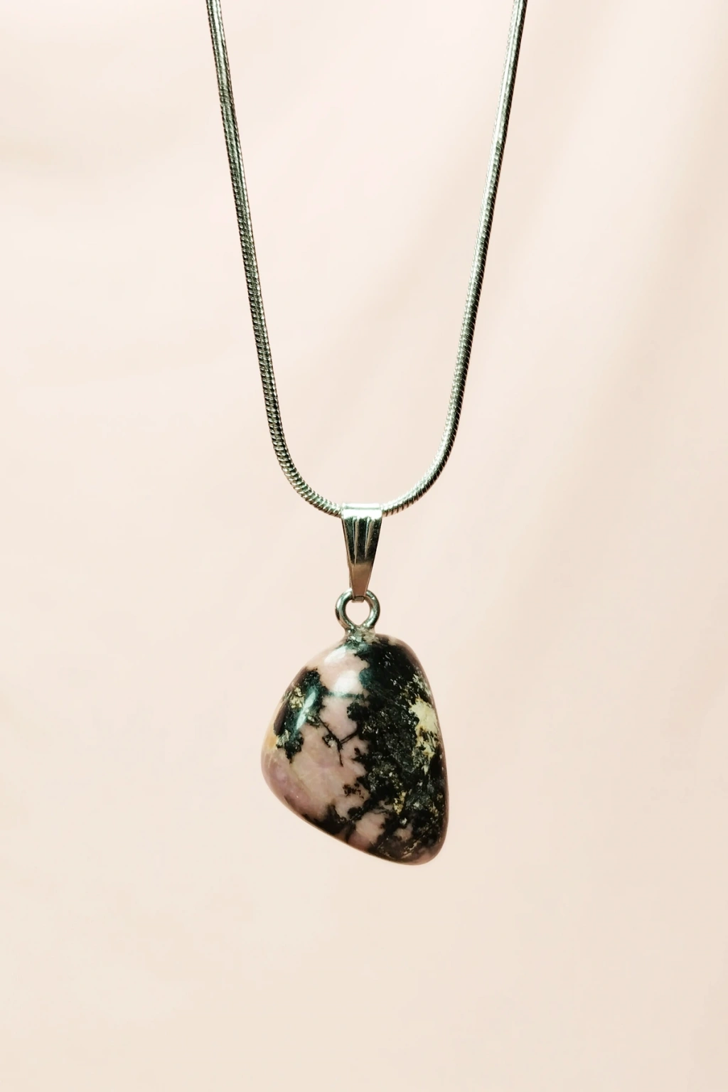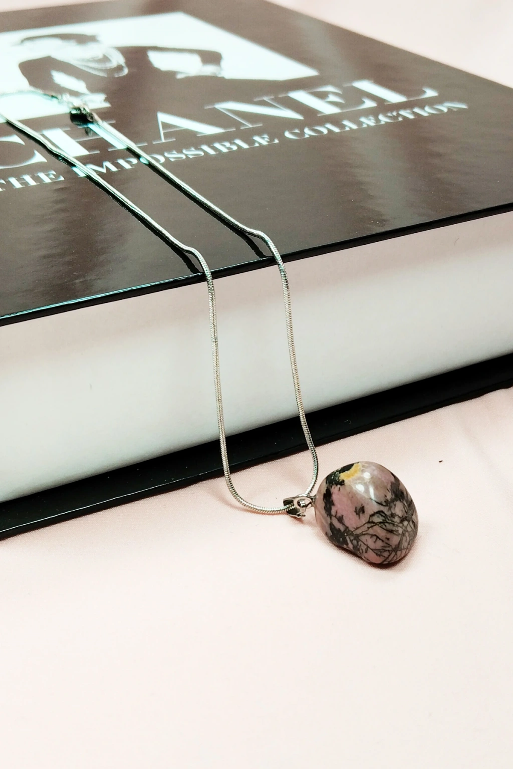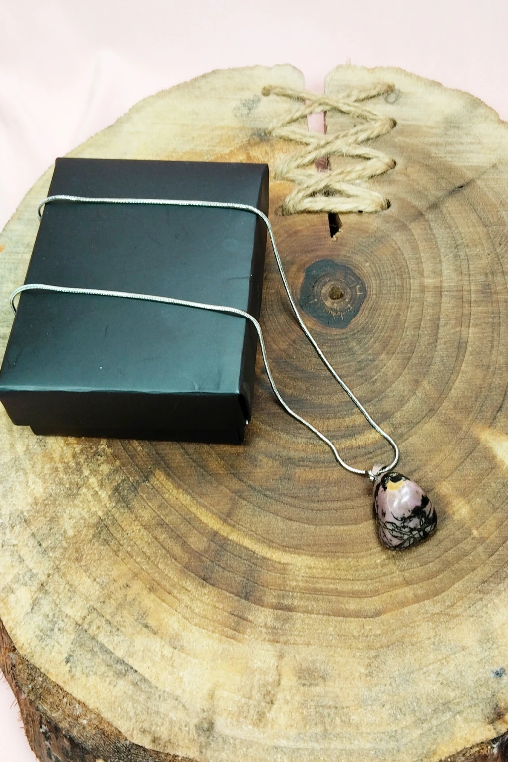 biçomi Rodonit Doğal Taşı Zincirli El Yapımı Kolye Uç: 2 cm Zincir: 20 cm Kutulu