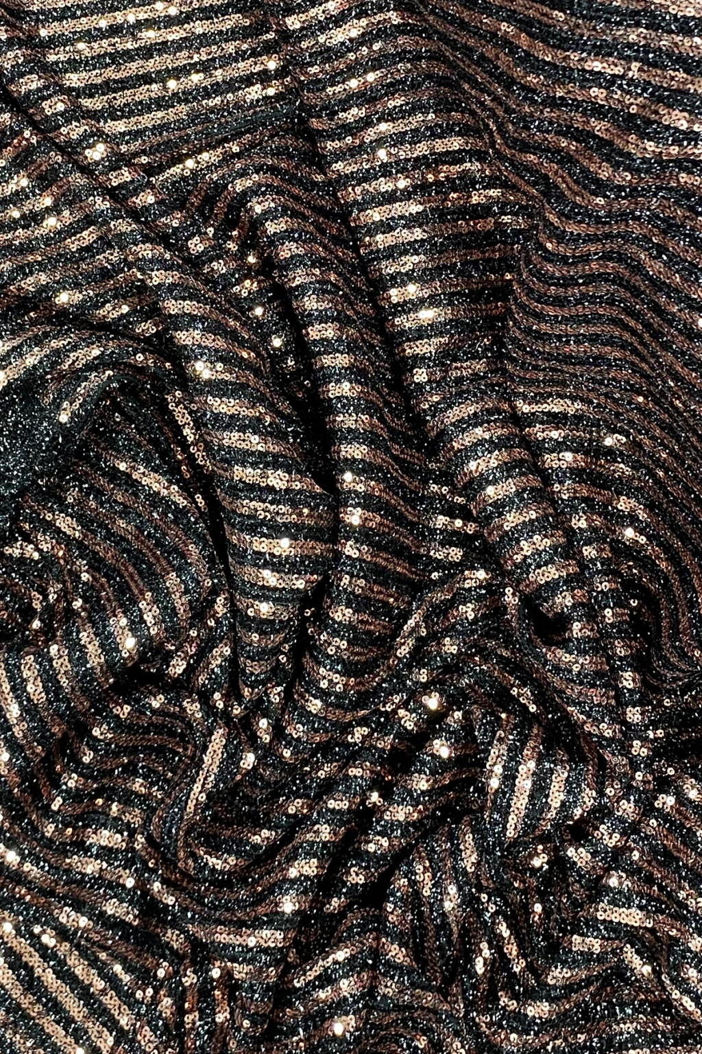 biçomi Sakallı Çizgili Pullu Kumaş Pullu Payet Kumaş Abiye Nişan Düğün Siyah Bakır
