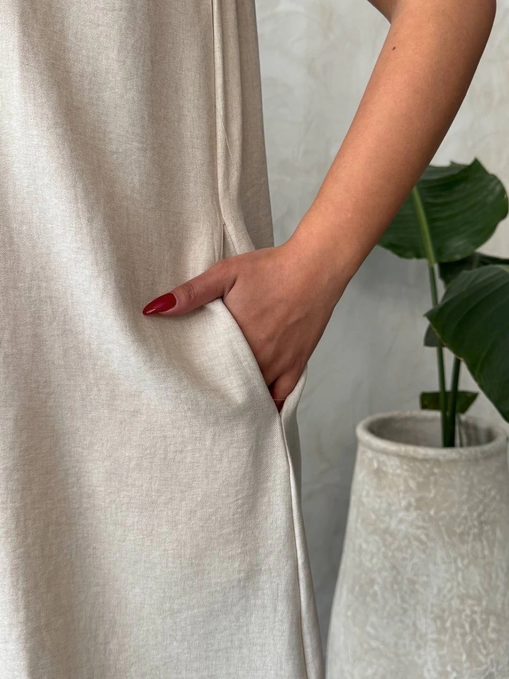 Salaş kesimi ve rahatlığı ile öne çıkan bu şık keten elbise, her mevsimde tercih edebileceğiniz bir parça olacak. Hem günlük kullanıma hem de özel günlerde şıklığınızı tamamlamak için ideal bir seçimdir.