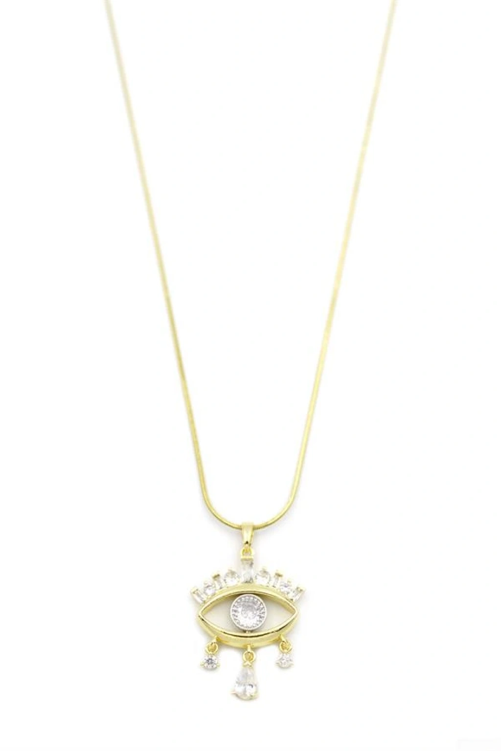 biçomi Sallantılı Taşlı Göz Kolye - Altın