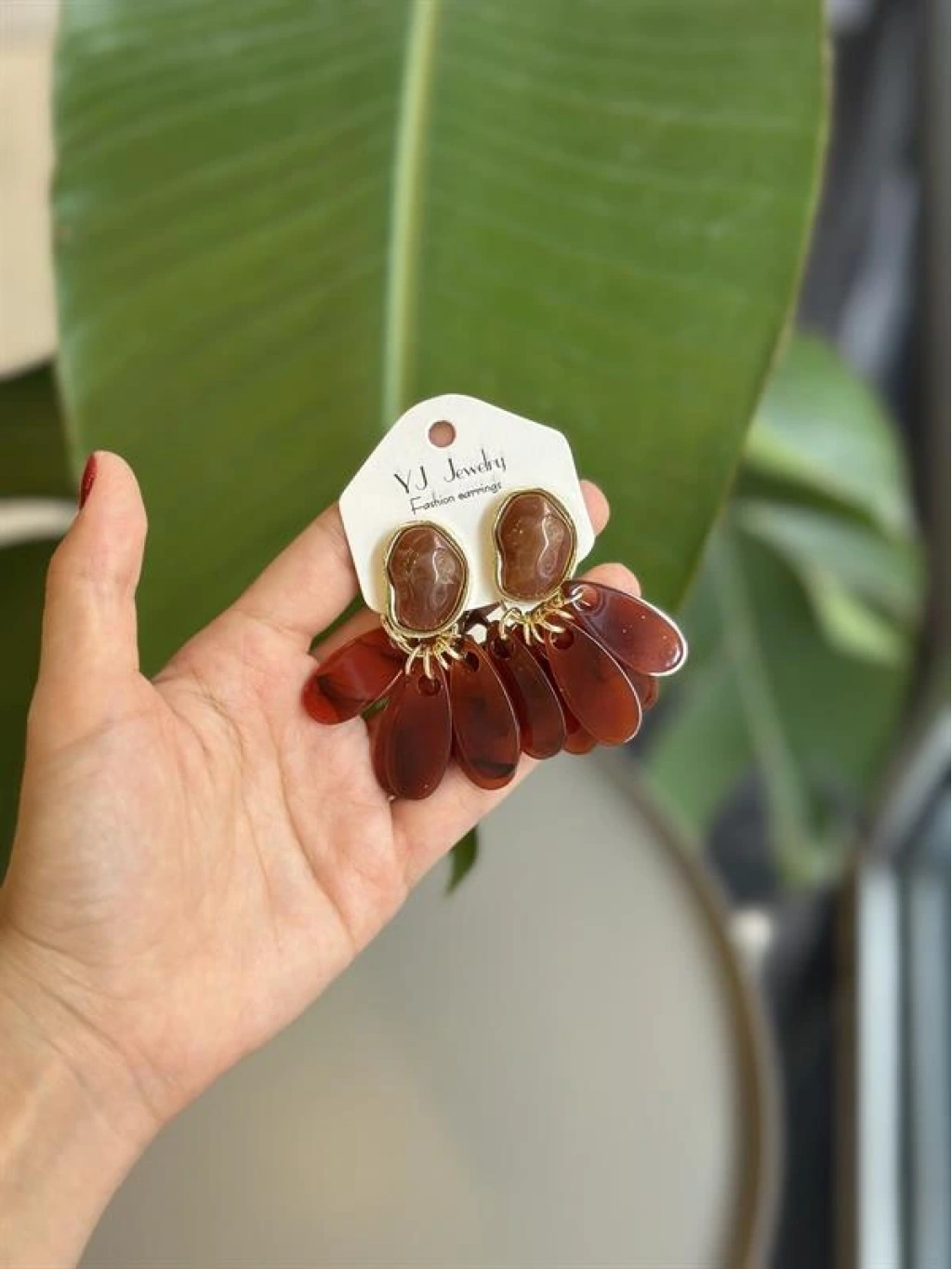 biçomi Sallantılı Taşlı Küpe - Bordo