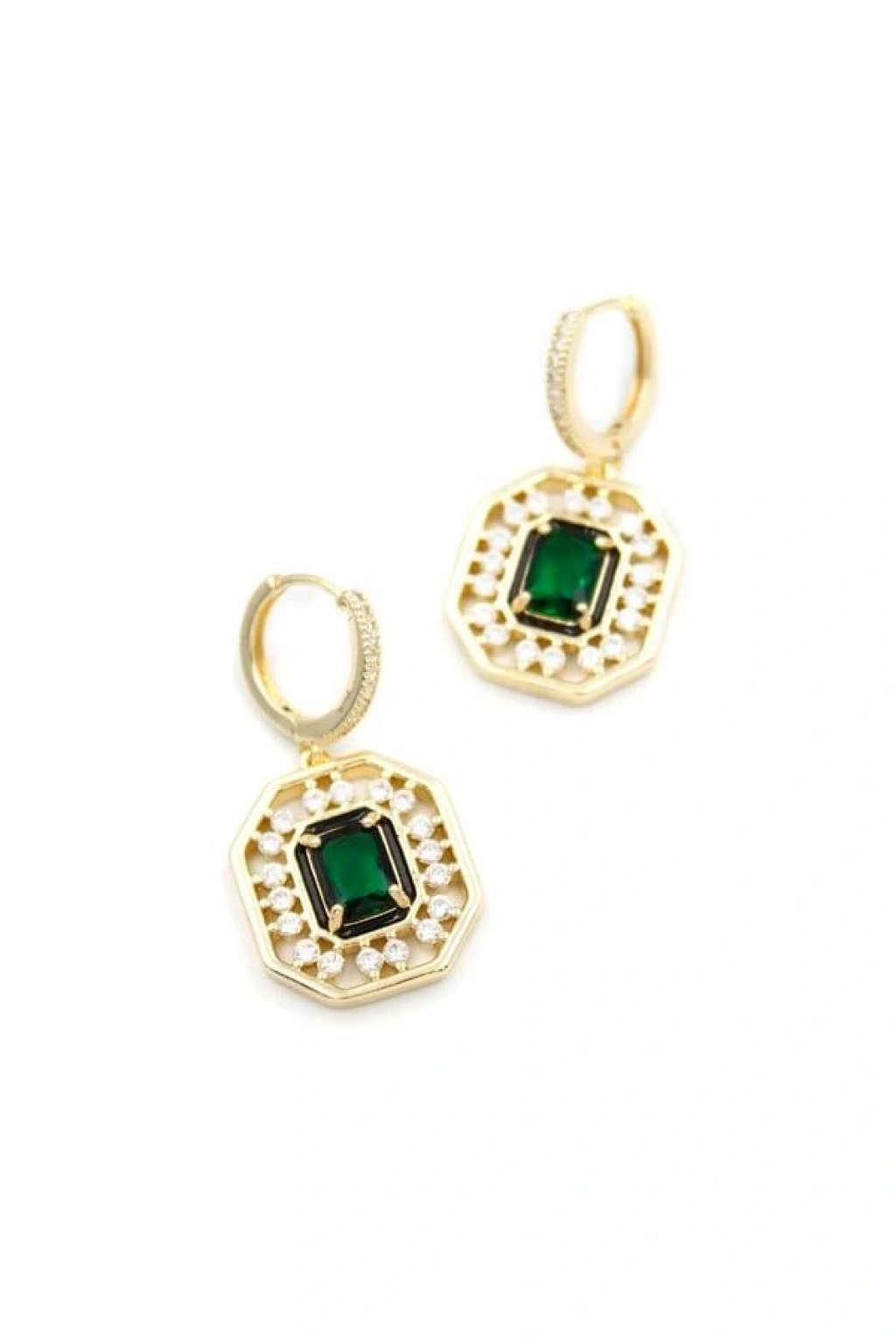 biçomi Sallantılı Taşlı Küpe - Bordo