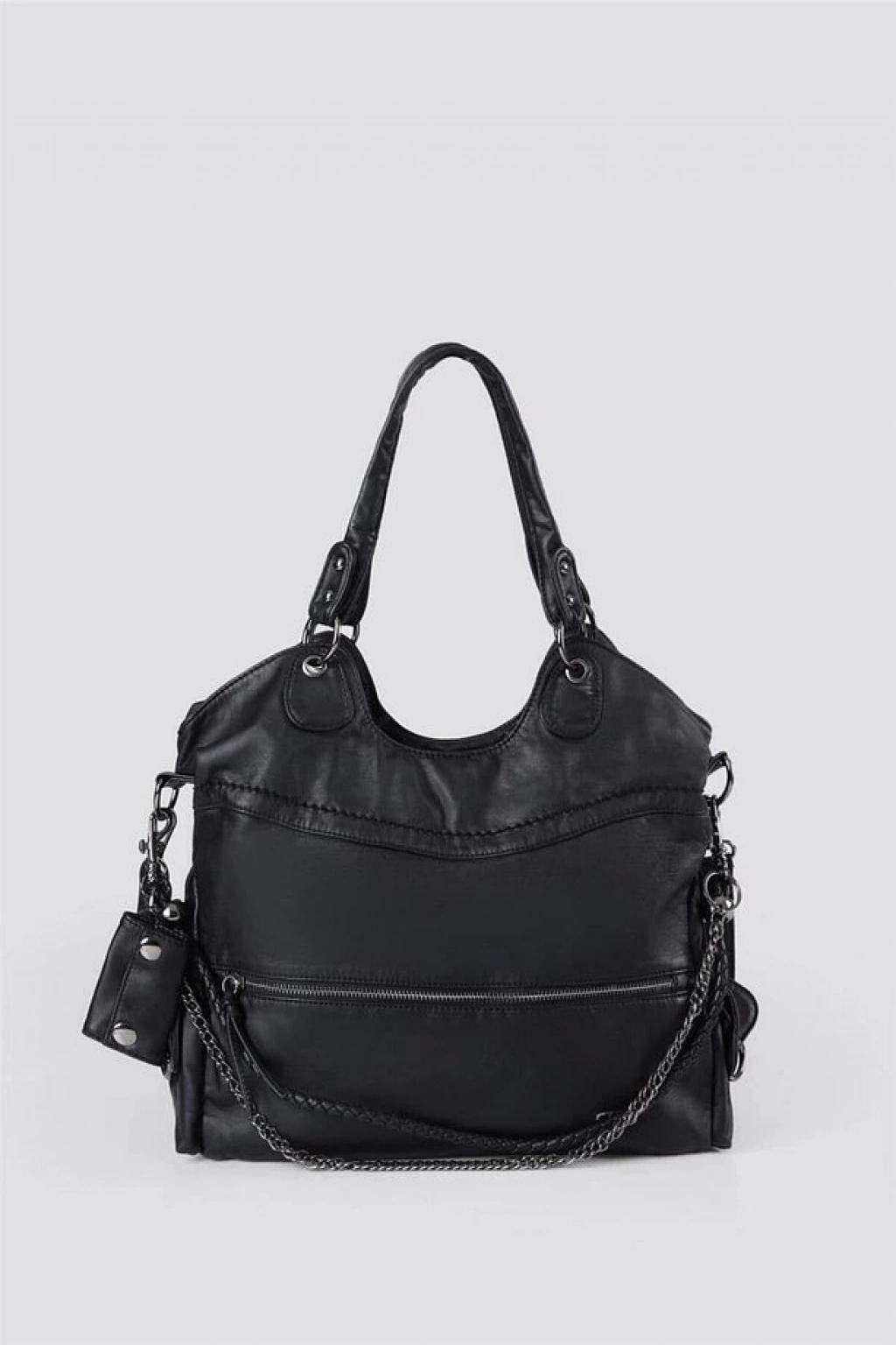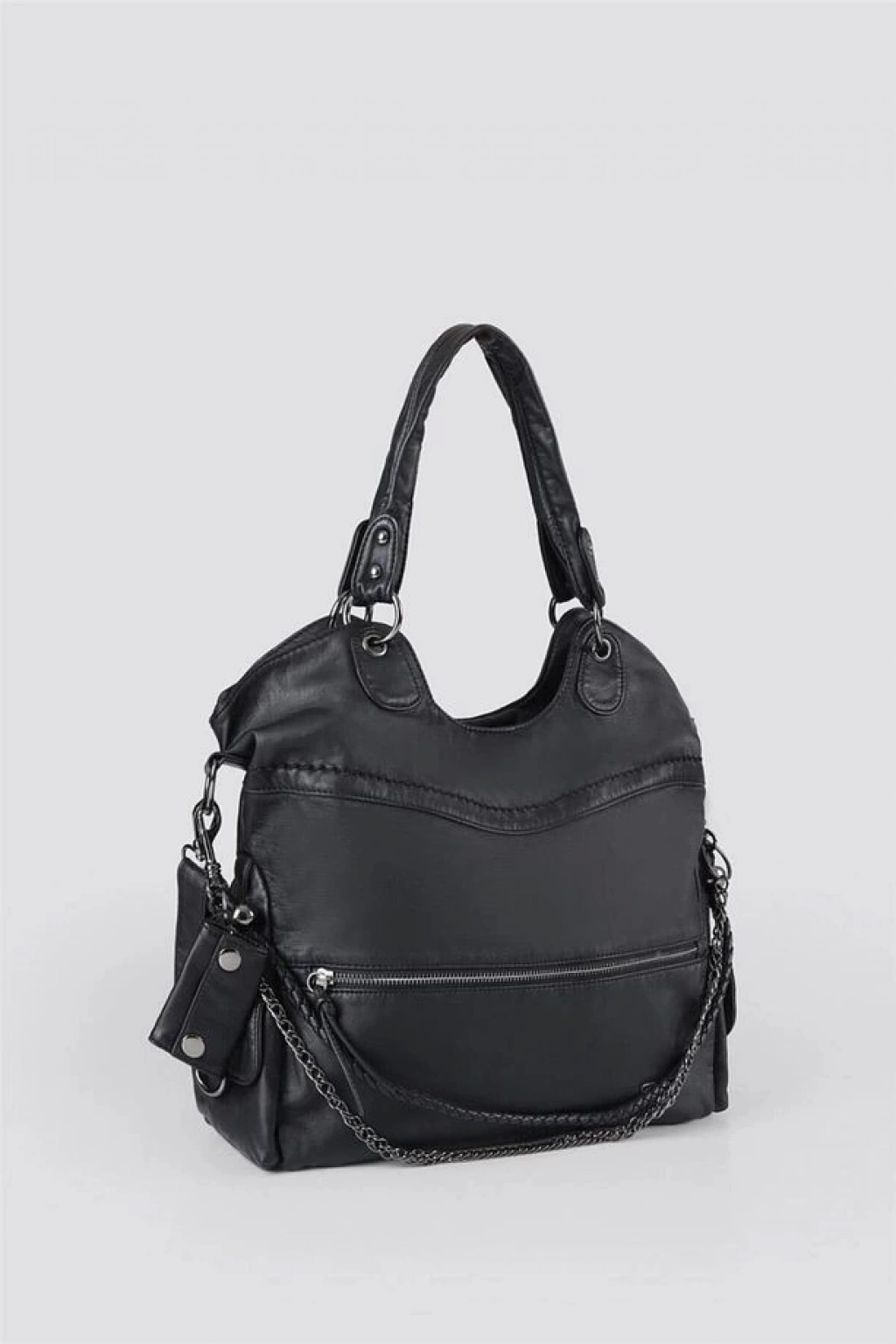 BİÇOMİ Silla Siyah Cilt Omuz Çantası