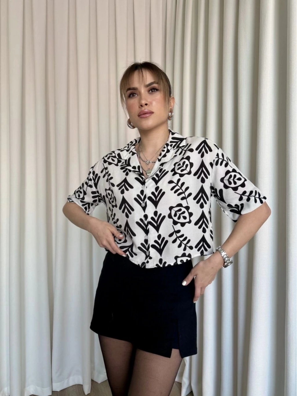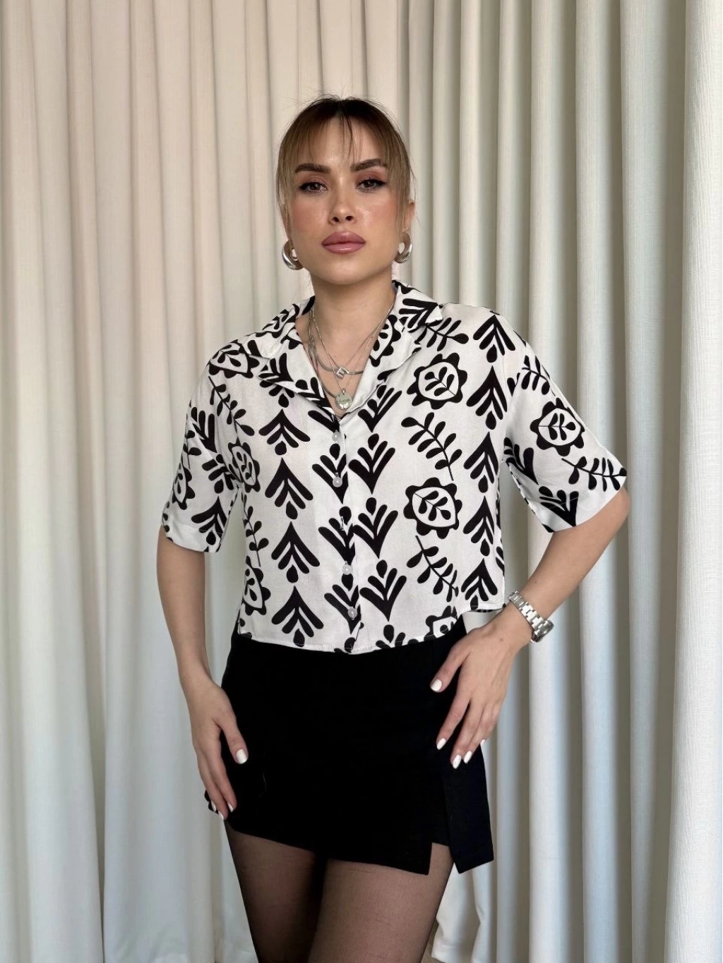 BİÇOMİ Siyah beyaz baskılı crop gömlek