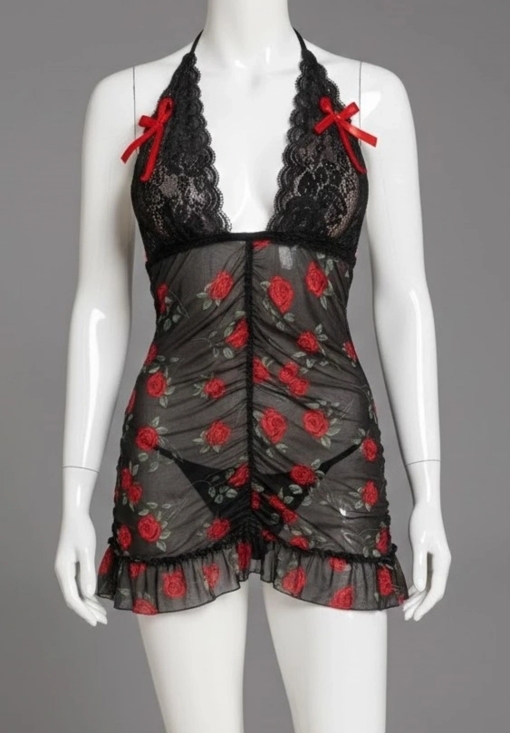 Kendinizi hiç olmadığınız kadar özel ve iddialı hissetmeye hazır mısınız? Bicomi Siyah Dantel İşlemeli Gül Desenli Mini Fantezi Gecelik, romantik detayları cesur bir formla birleştirerek gardırobunuzun en vazgeçilmez parçası olmaya aday