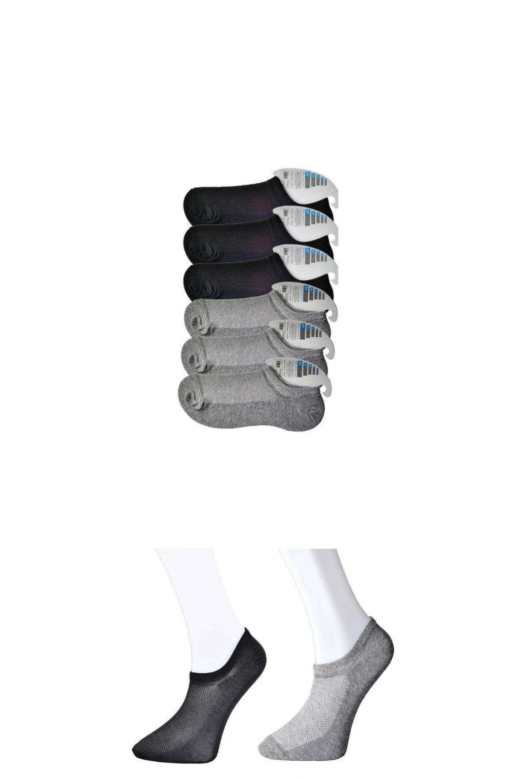 biçomi Siyah ve Gri Erkek Görünmez Çorap 6 çift