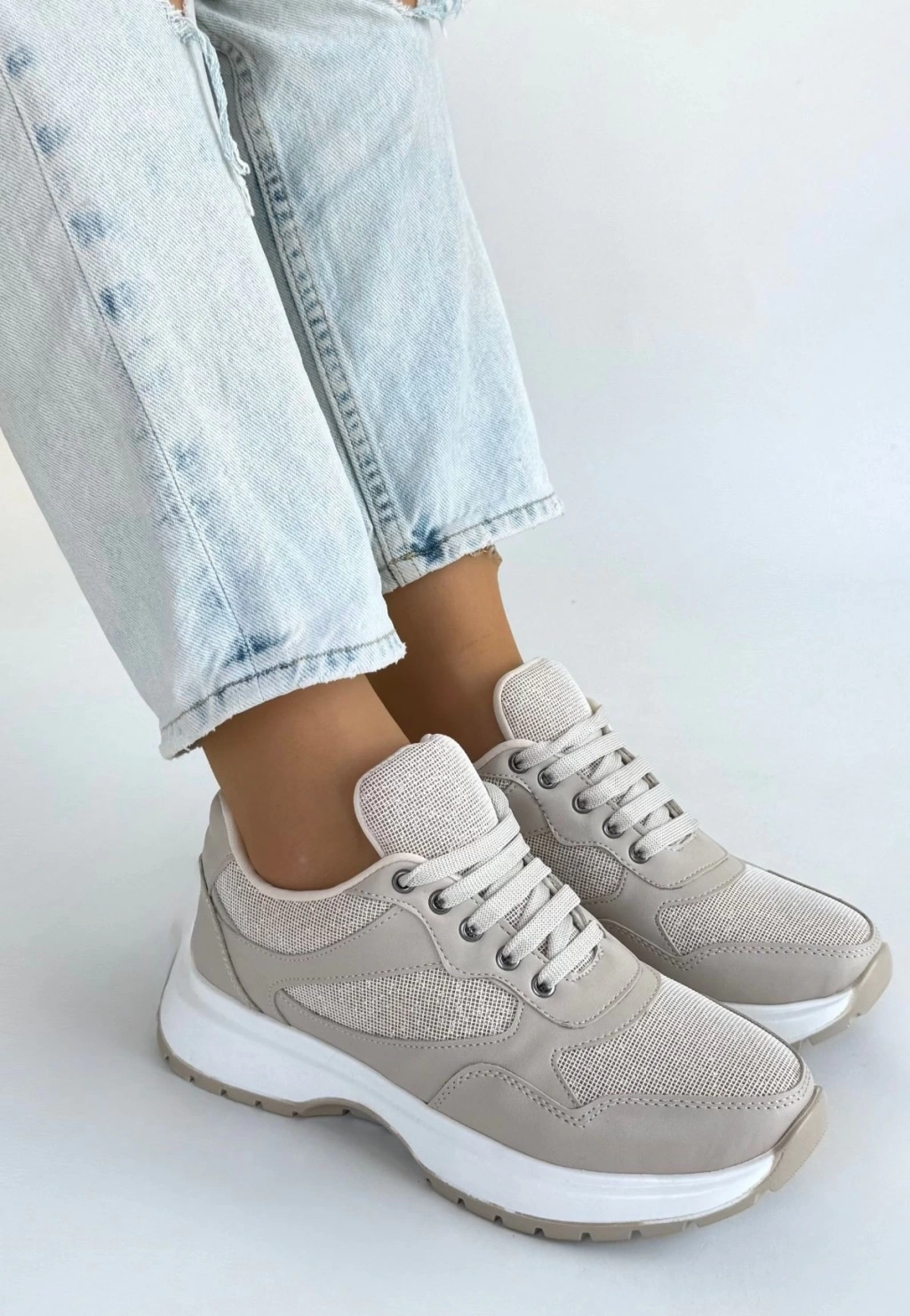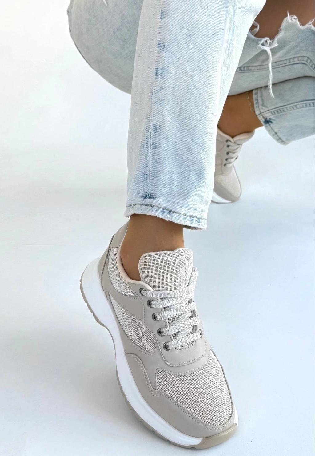 BİÇOMİ Slar Bej Cilt Bağcıklı Spor Ayakkabı