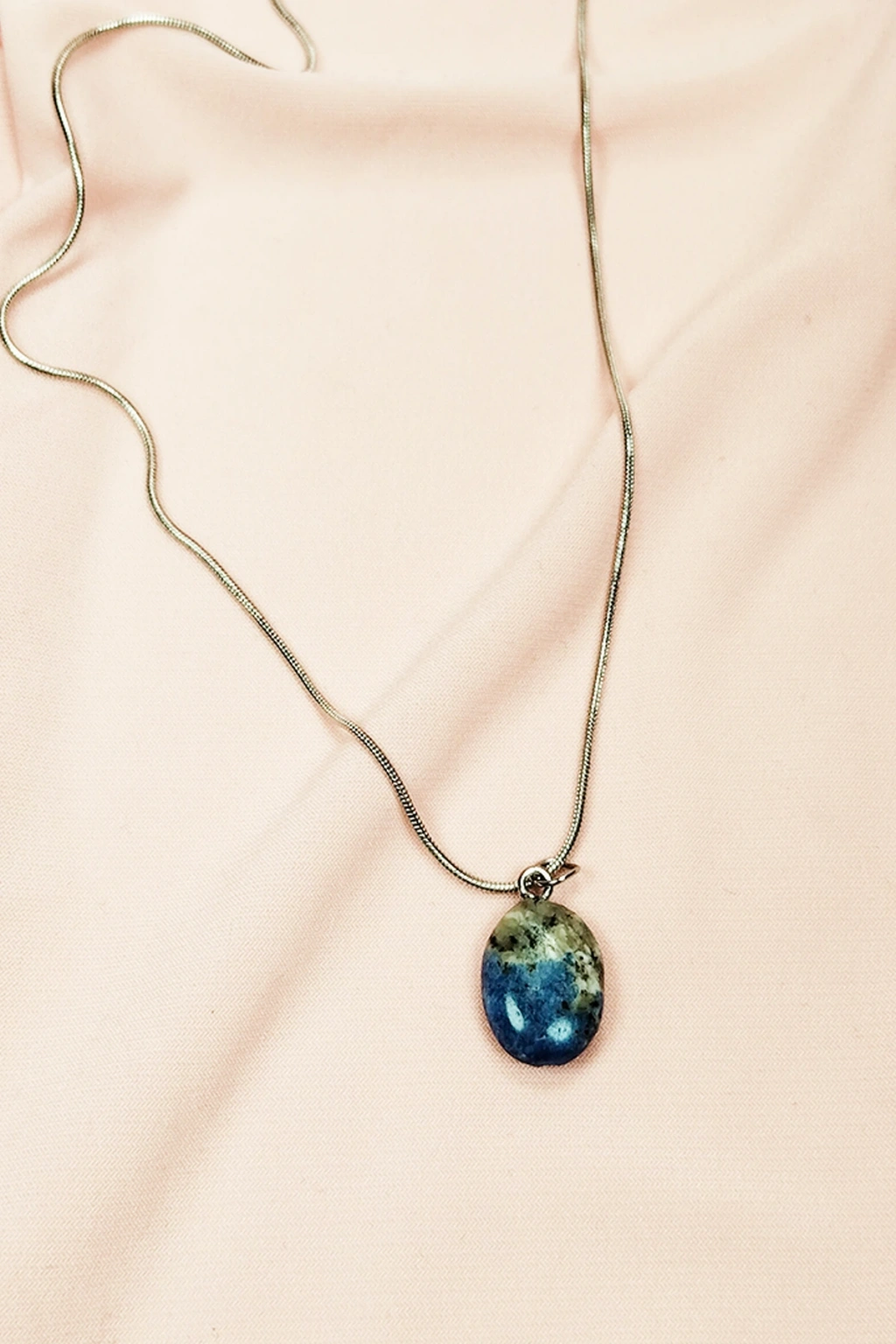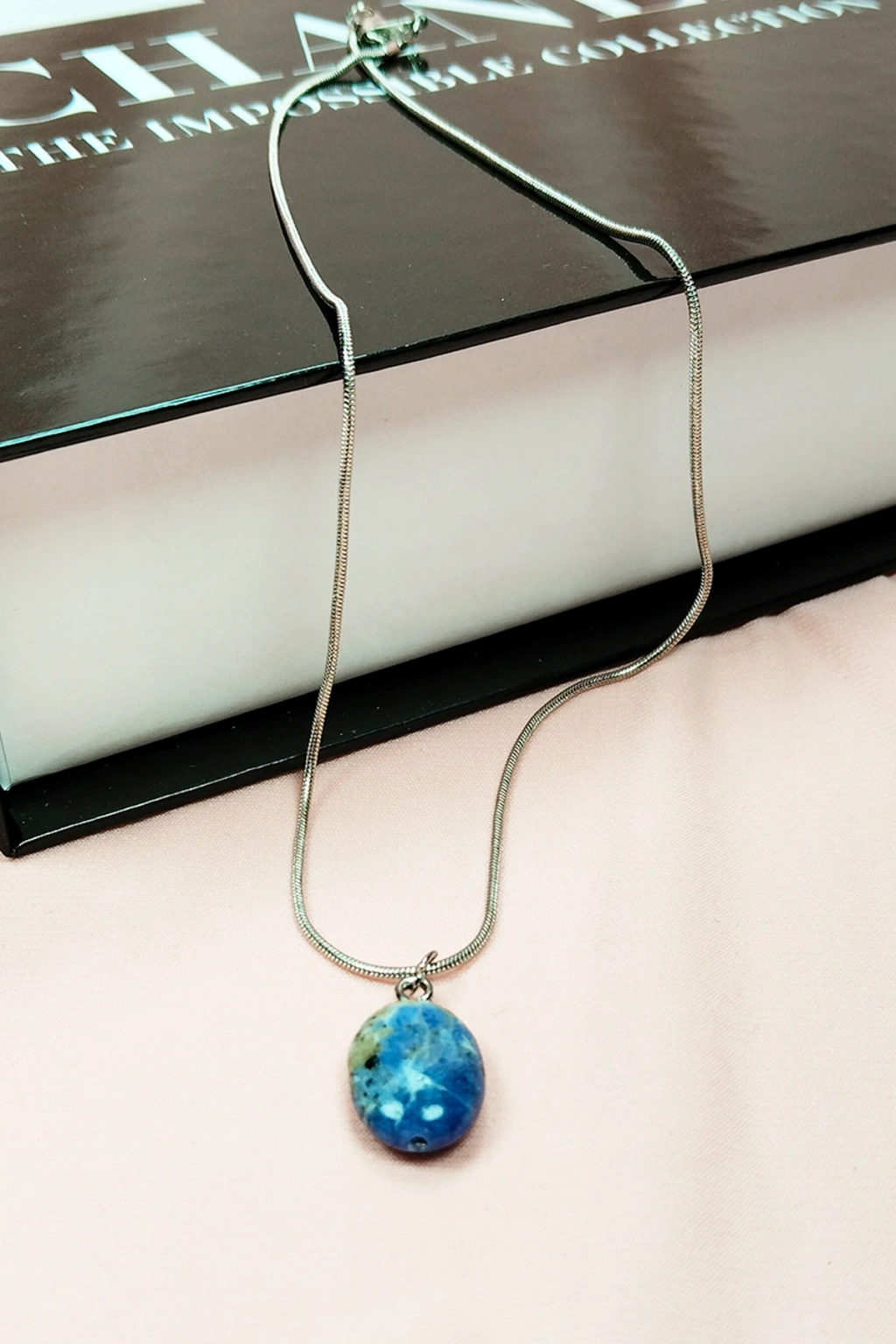 biçomi Kalsedon Doğal Taşı Zincirli El Yapımı Kolye Uç: 1,5 cm Zincir: 20 cm Kutulu