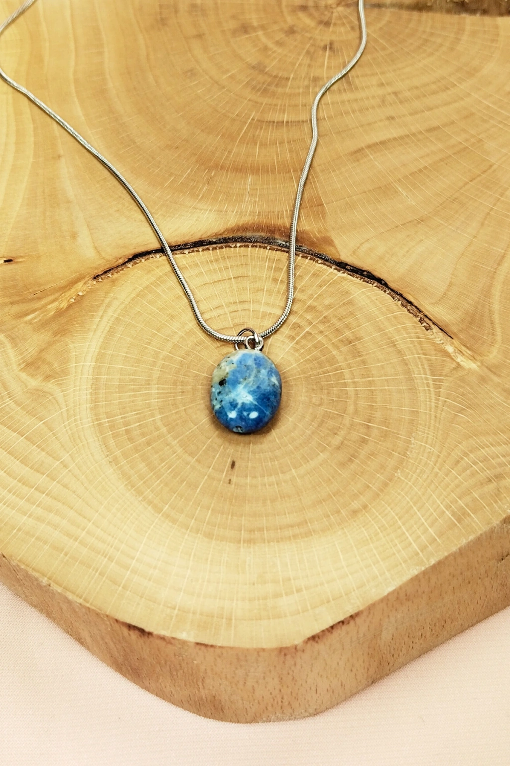 Sodalit Doğal Taşı Zincirli El Yapımı Kolye Uç: 1,5 cm Zincir: 20 cm Kutulu