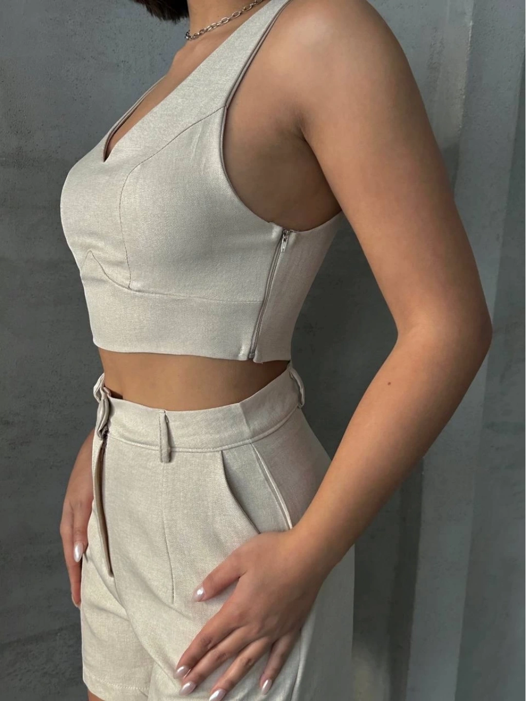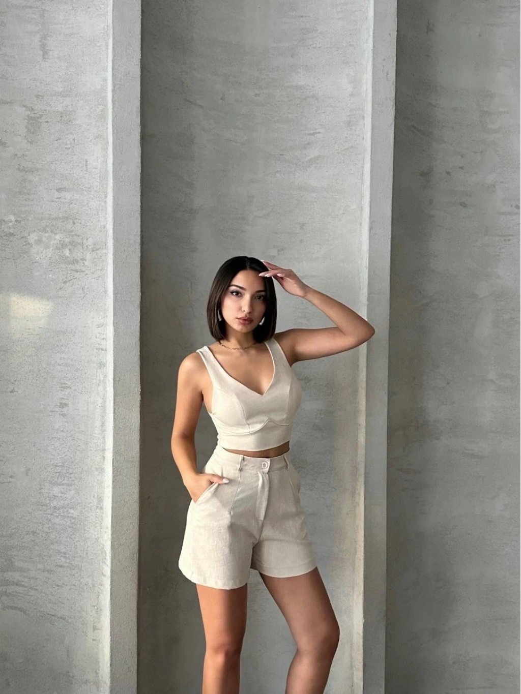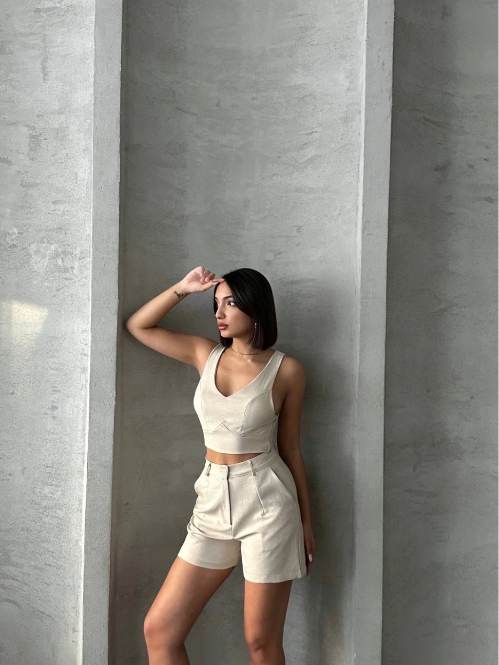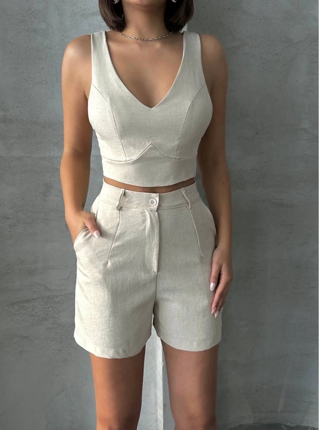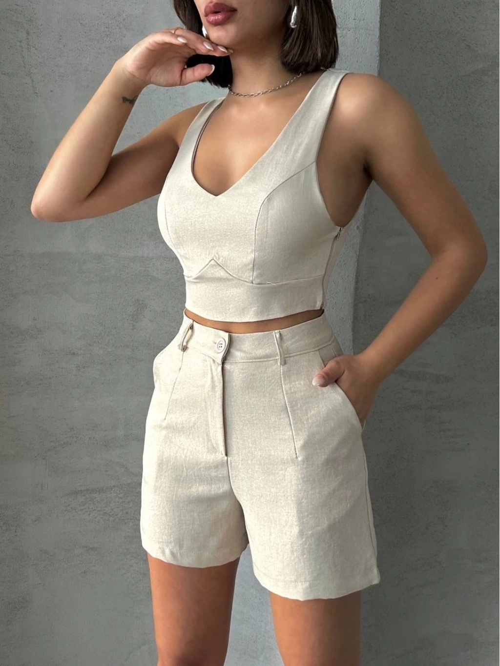 BİÇOMİ Şortlu keten takım s255014