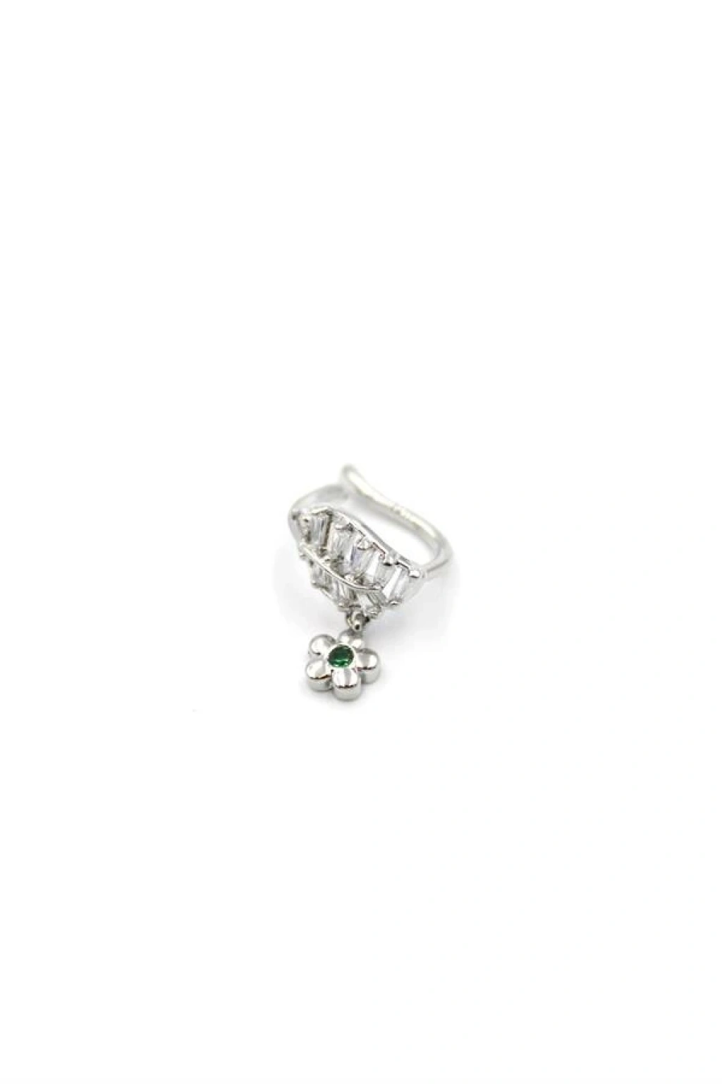 Taşlı Çiçek Kıkırdak Küpe - Gümüş