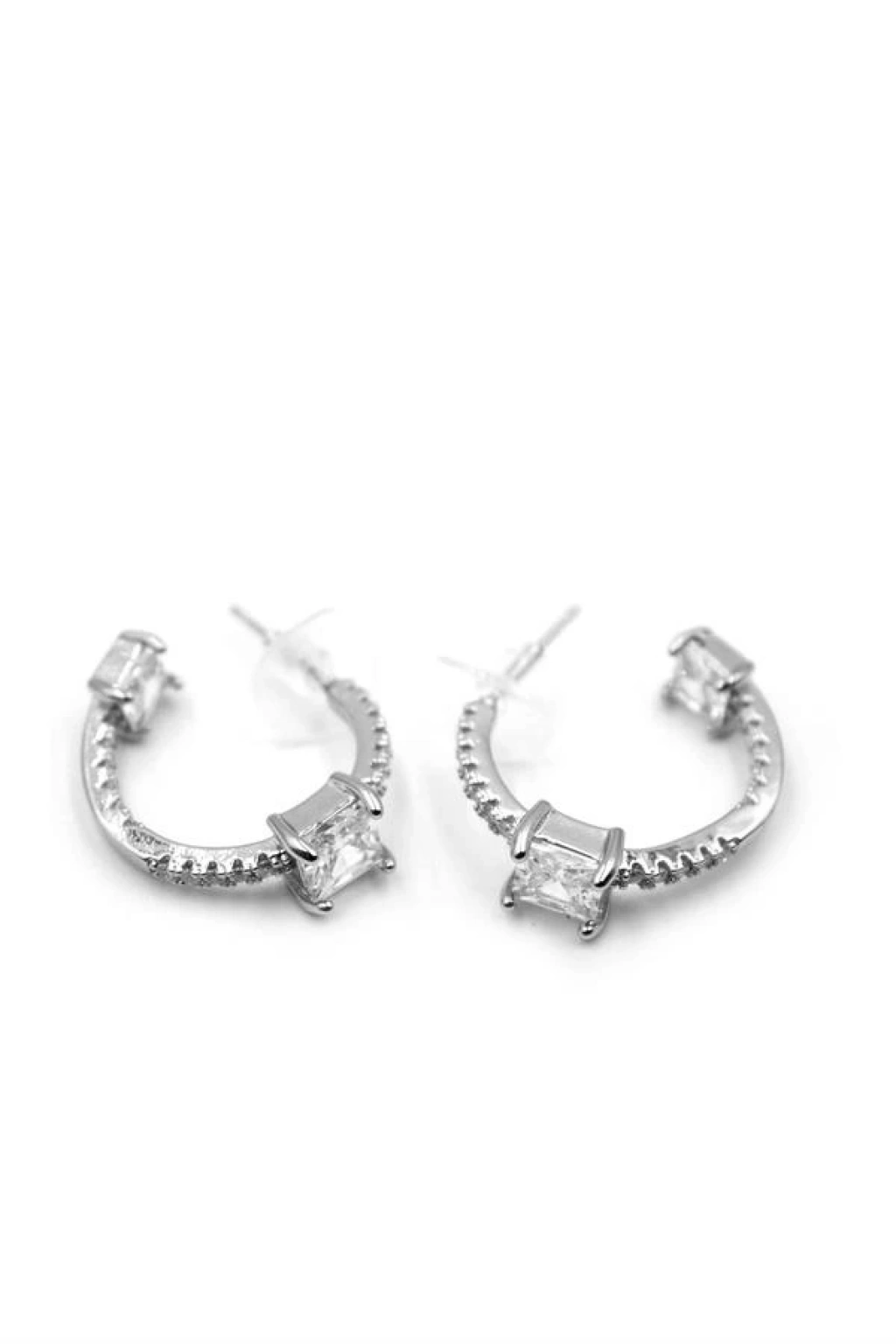 Taşlı Halka Küpe - Gümüş