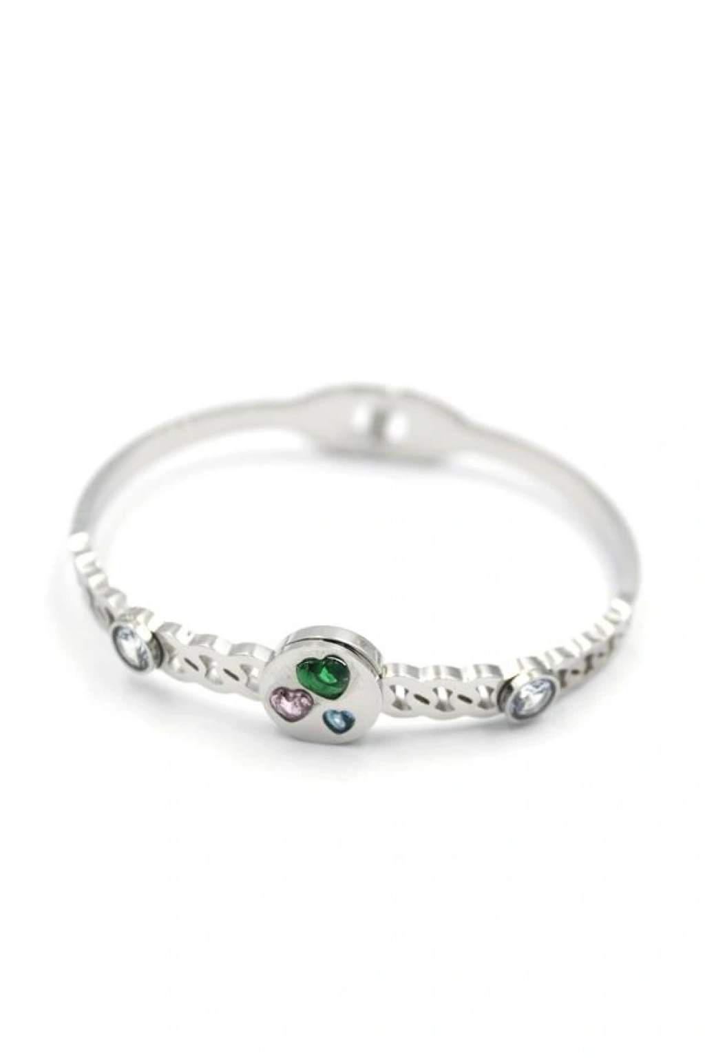 biçomi Taşlı Kalp Bilezik - Gümüş