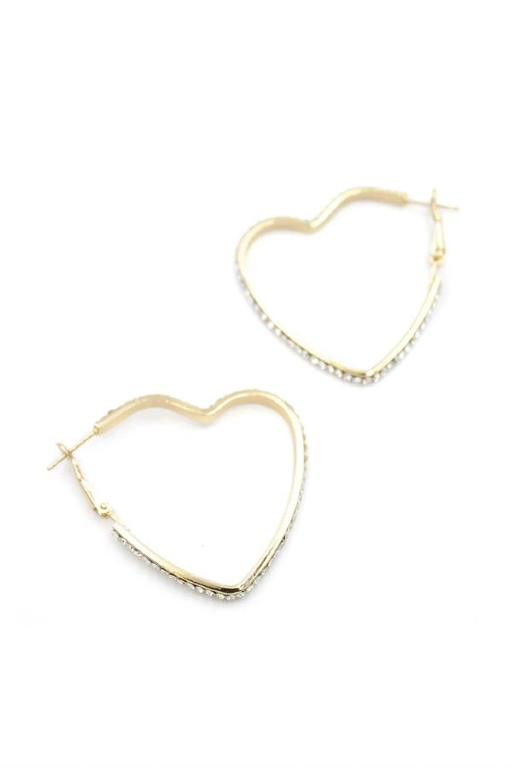 biçomi Taşlı Kalp Halka Küpe - Altın