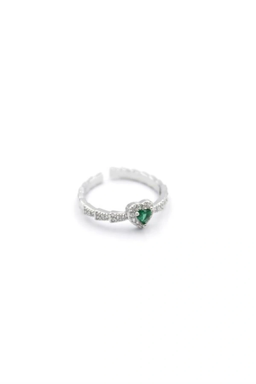 biçomi Taşlı Kalp Yüzük - Gümüş